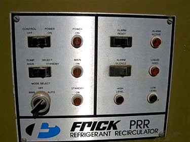 Frick Recirculating Tank. Approximate capacity: 700 gallons. Refrigerant: R-717 (Ammonia). MAWP: 150 psi @ -20°F to 200°F. (2) Cornell pumps, model: 2CBS2-4, with Marathon electric motors: 2 hp, 1740 rpm, 230/460V, 60 Hz, 3 phase. Frick PRR control panel. Hansen Technologies Variable-Level LB3 control panel. Henry Technologies Valve Co. LI-49, sight glass. (2) Cyrus Shank safety relief valves, type: 803 TD. Overall Dimensions: 12 ft. 8 in. L x 7 ft. W x 10 ft. 5 in. H.