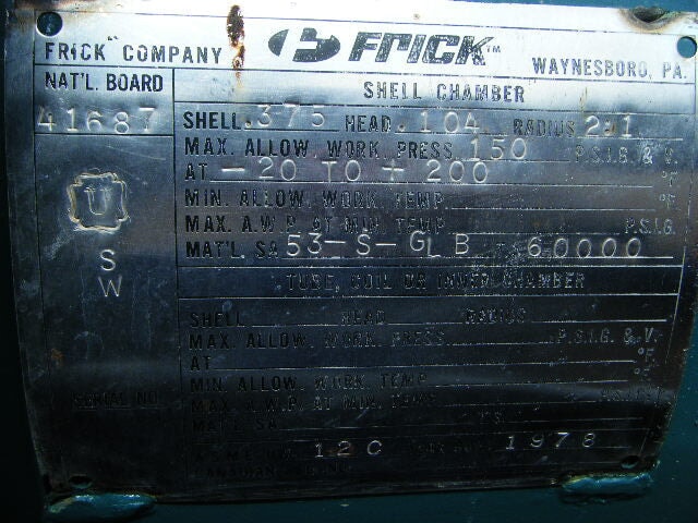 - Compressor Manufacturer: Frick