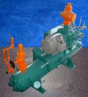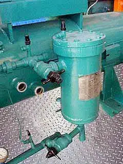 Frick LDB 26 Booster Rotary Screw Compressor Package. Model LDB 26, S/N MC-80164. Nominal capacity: Westinghouse electric motor, 50 hp, 3523 rpm, 230/460V, 117/58.5 amps, 60 Hz, 3 phase. Frick oil separator, Nat’l Bd: 44451, MAWP: 150 psig at -20ºF to 200ºF. Shell and head thickness: .375 in. Radius: 2/1. Frick oil filter housing, S/N: MC-80164, MAWP: 300 psig at -20ºF to 200ºF. Shell thickness: .277 in. Head thickness: .75 in. Radius: flat. Liquid injection cooling. Unit has a simple, on/off Frick control panel. Inlet: 4 in. suction. Outlet: 2 in. discharge. Overall dimensions: 9 ft. 4 in. L x 3 ft. 3 in. W x 7 ft. H.