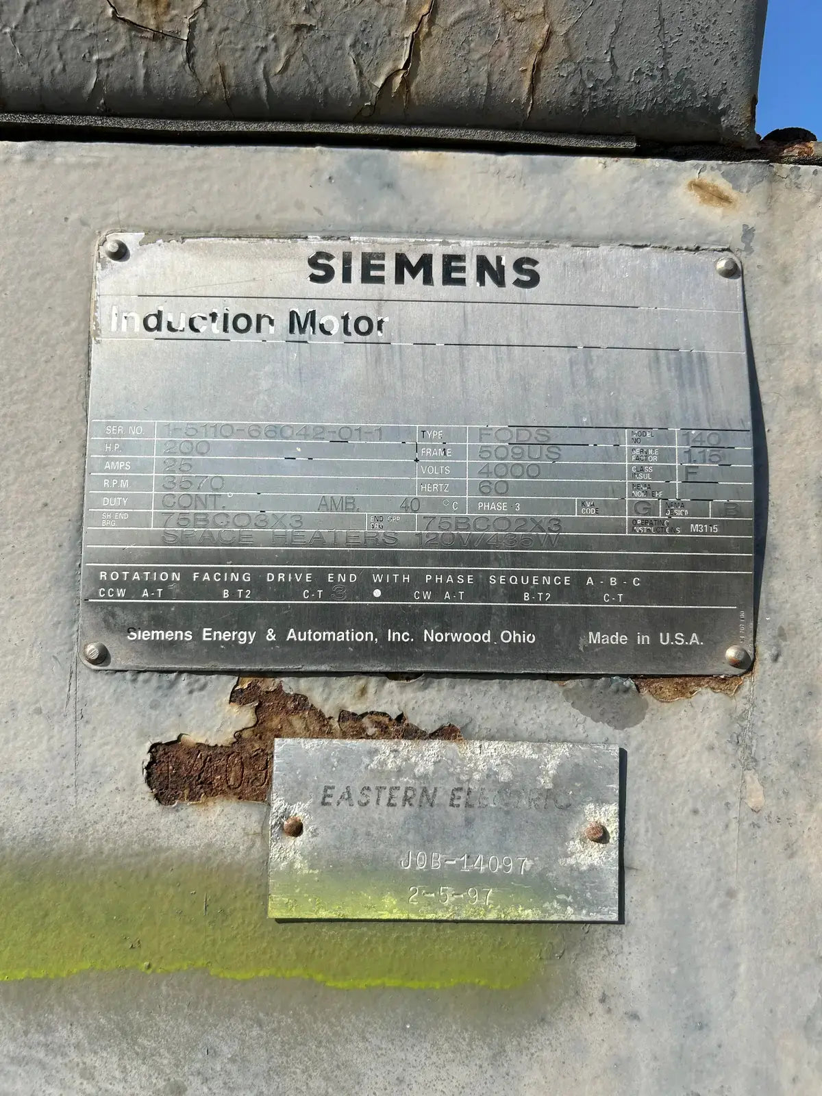 - Motor Manufacturer: SIEMENS