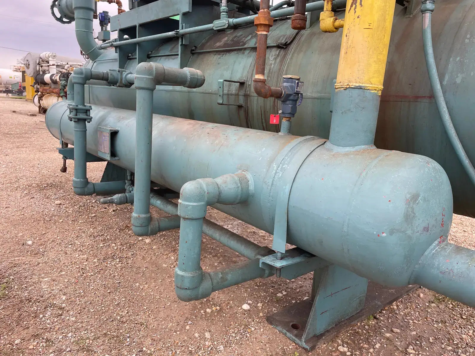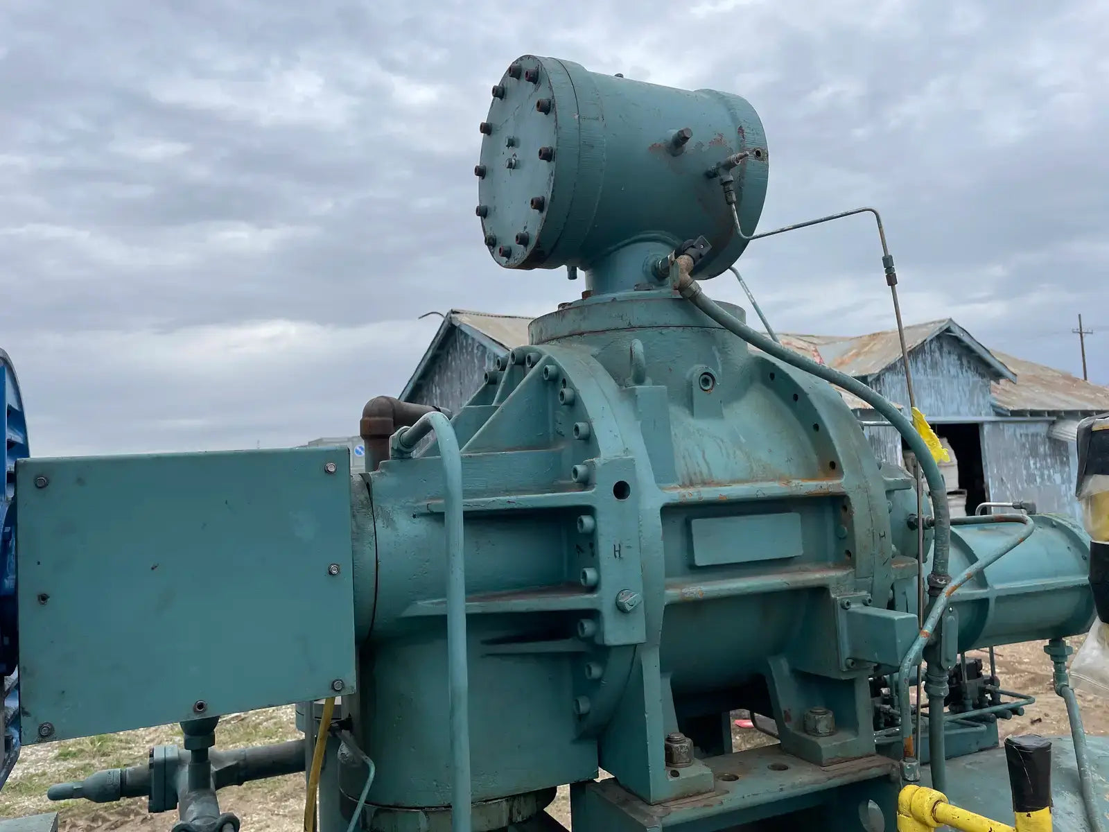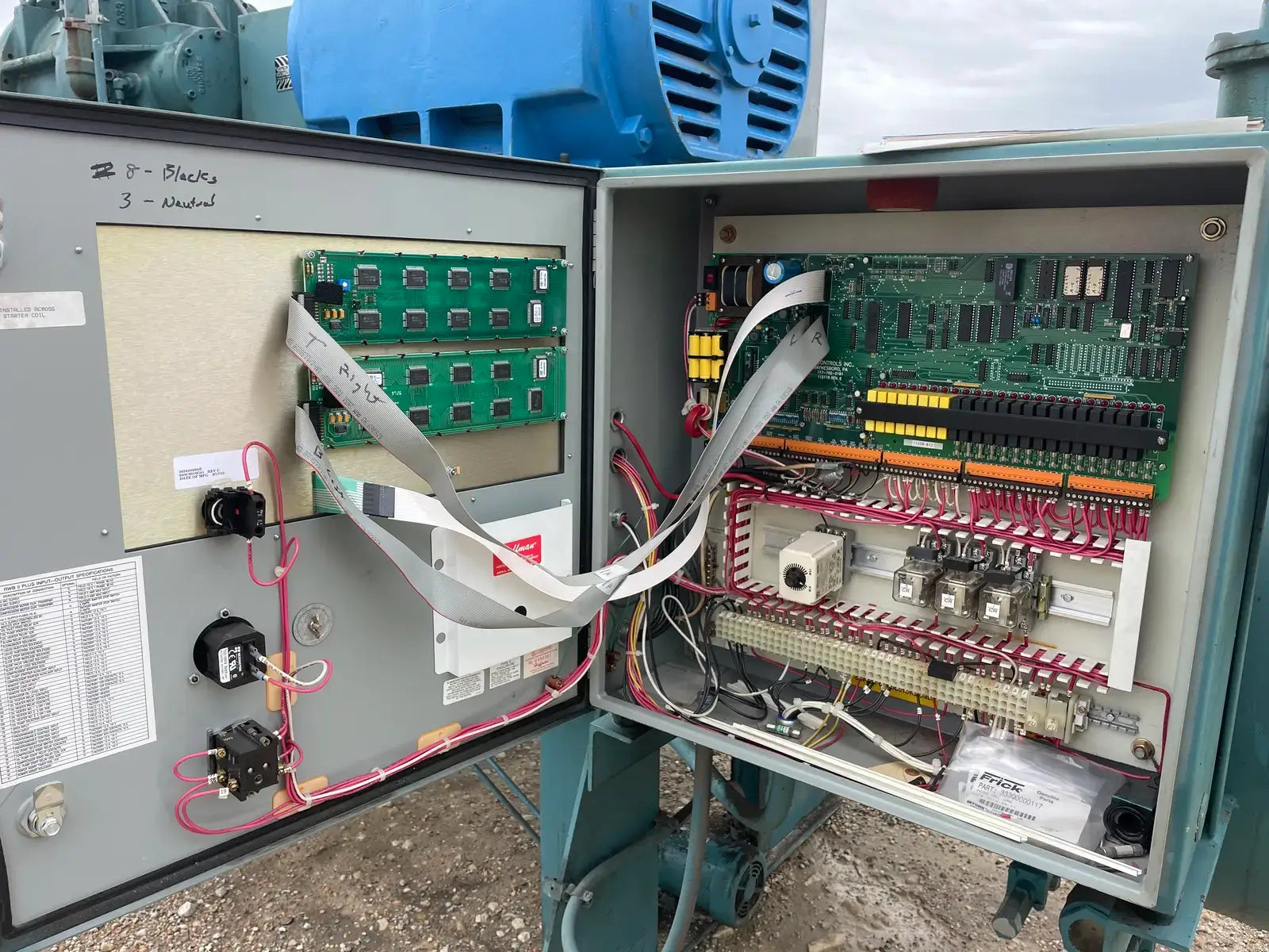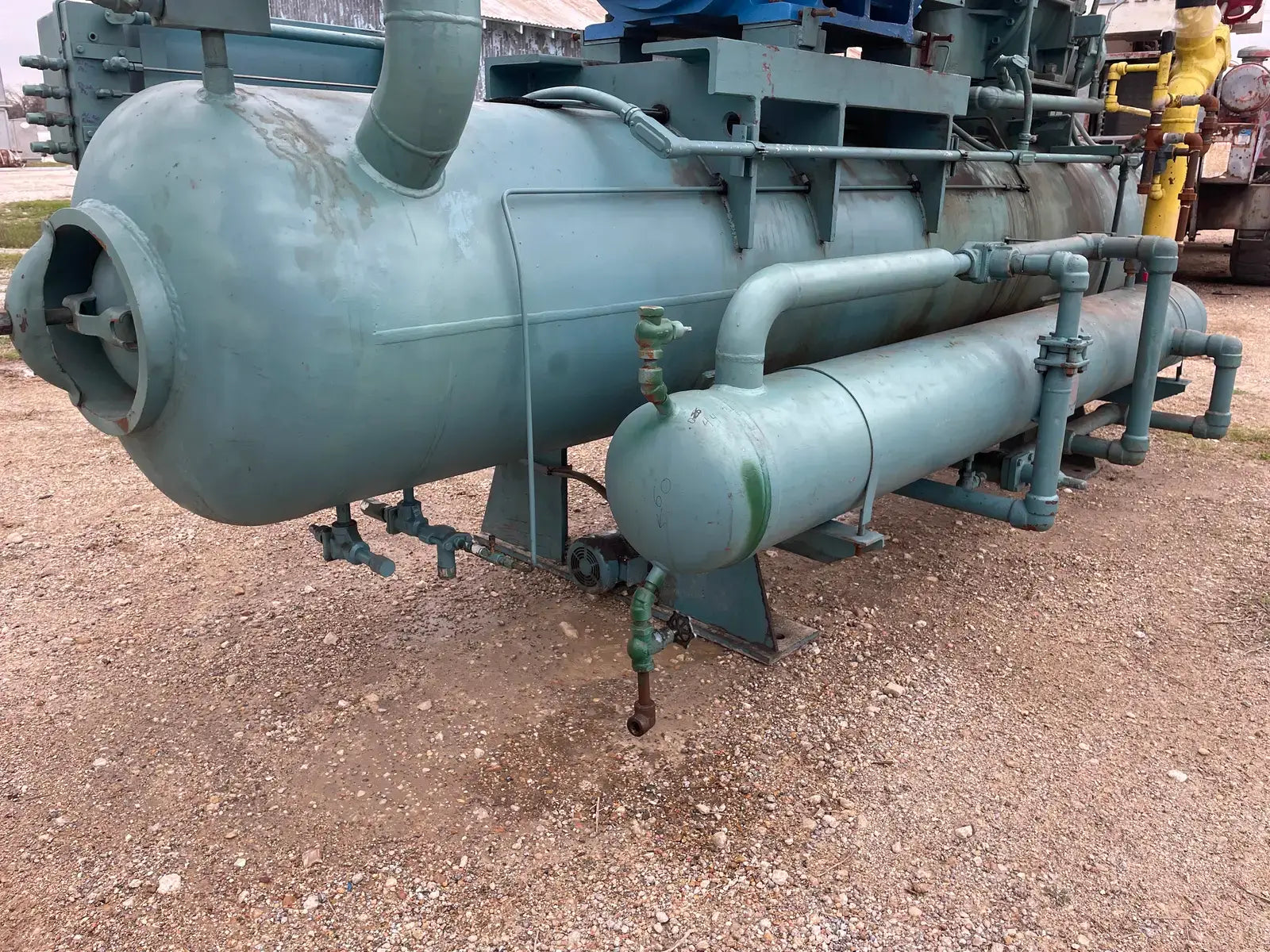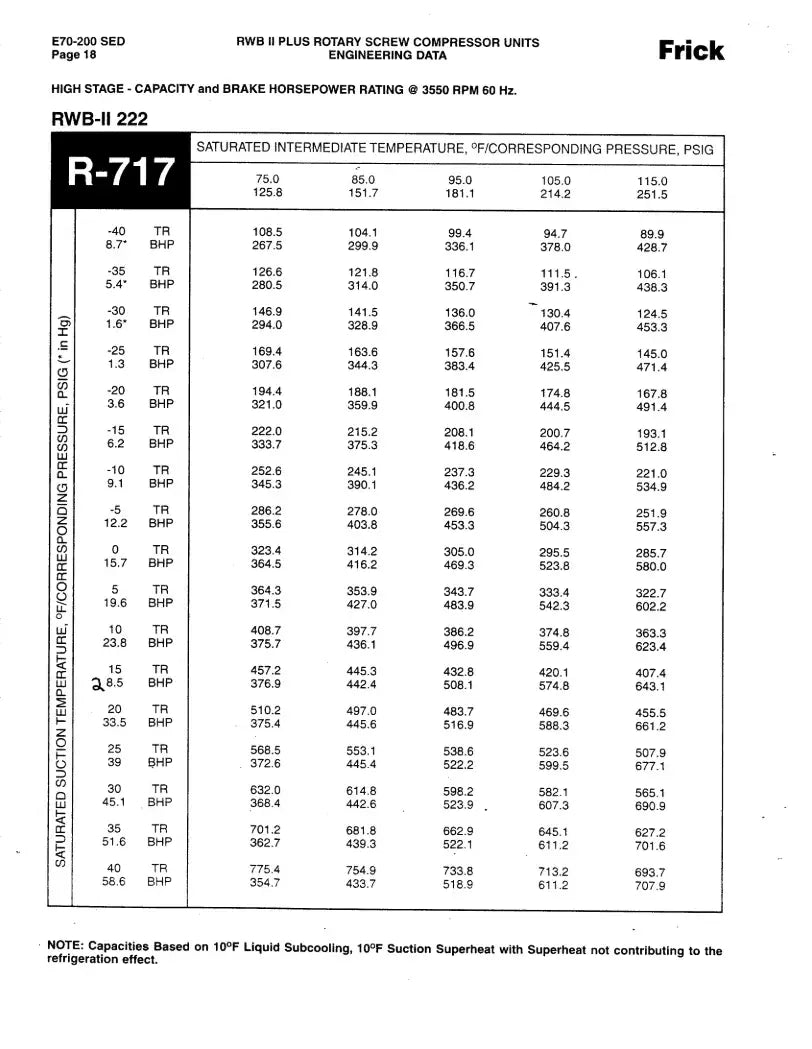 Frick Rotary Screw Compressor Package: Unit Model No: RWB II 222, Unit Serial No: S0296LFMPTHAA3, Frick Sales Order: 280642-01, Refrigerant: R717, Max Speed Rpm: 3600. Frick Rotary Bare Screw Compressor: Model: TDSH233L, Serial No: 1395F, Refrigerant: NH3/R22, Max Speed Rpm: 4500, Design Pressure: 363 PSIG, Year of Mfr: 1990. Certified Frick Oil Separator: National Board: 103933. Shell Chamber: MAWP: 300 PSI @ 200 F. MDMT: -20 F @ 10.2 PSI. Year Built: 1992. Toshiba Premium Efficiency 3-Phase Induction Motor: HP: 500, Type: TKKH, Volts: 460, RPM: 3570, Hz: 60, Amp: 528, Frame: 507USS. Frick RWB II Plus Control Panel.