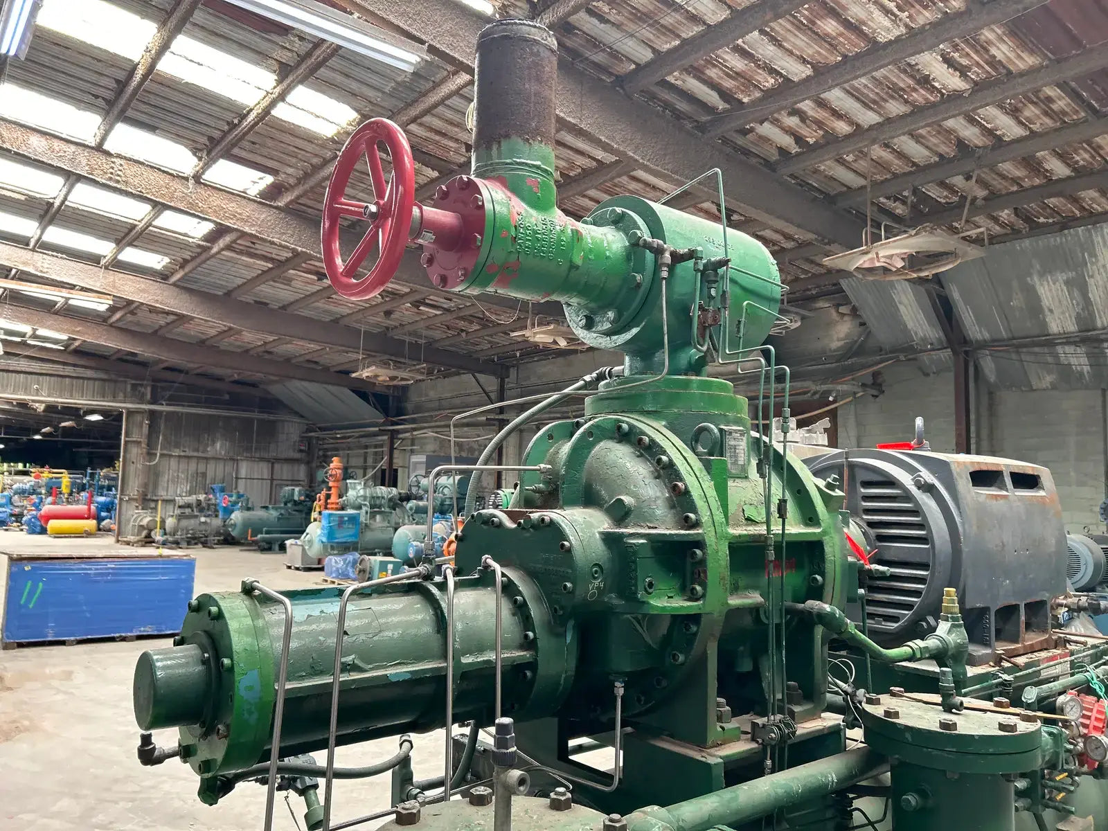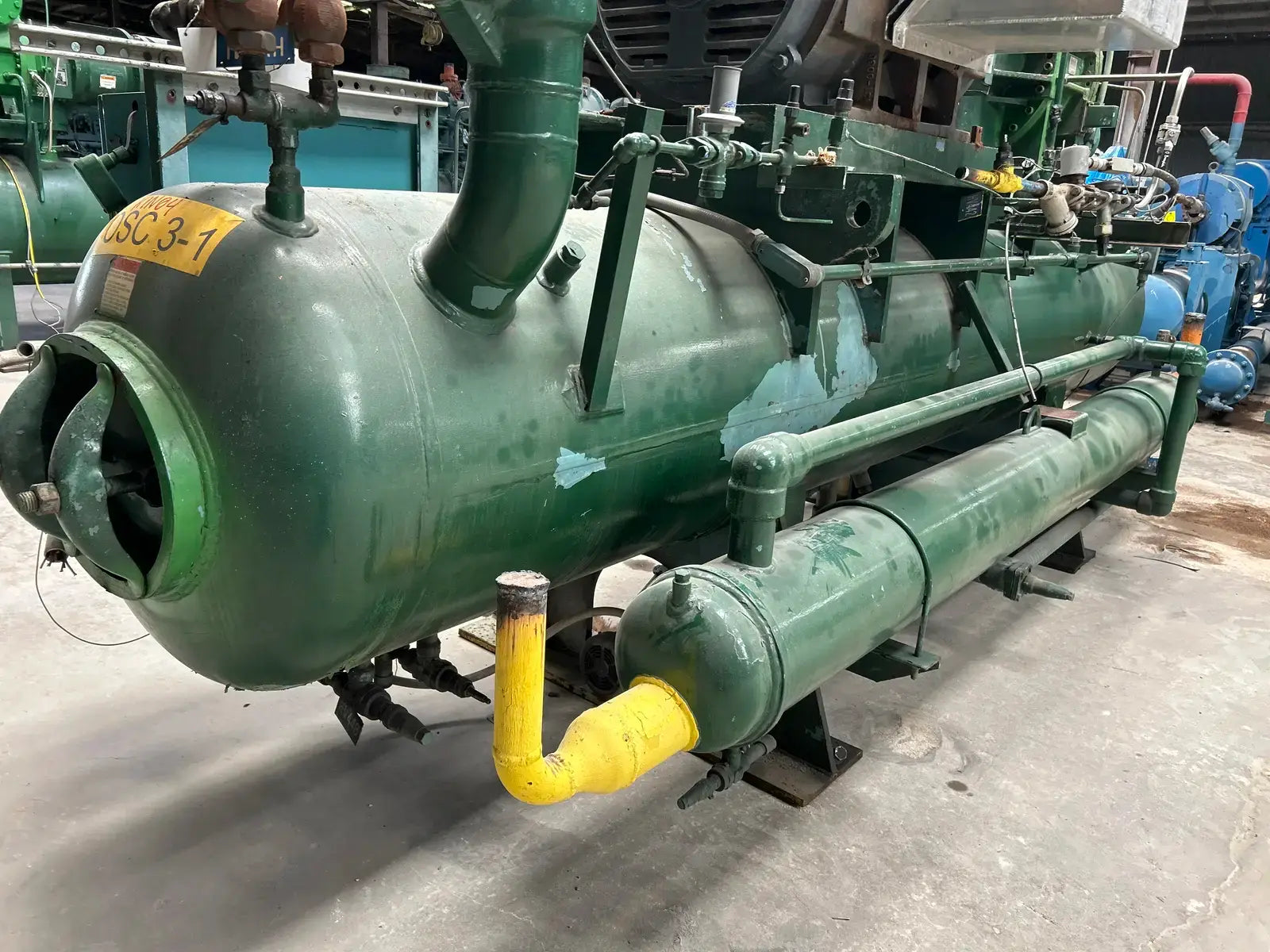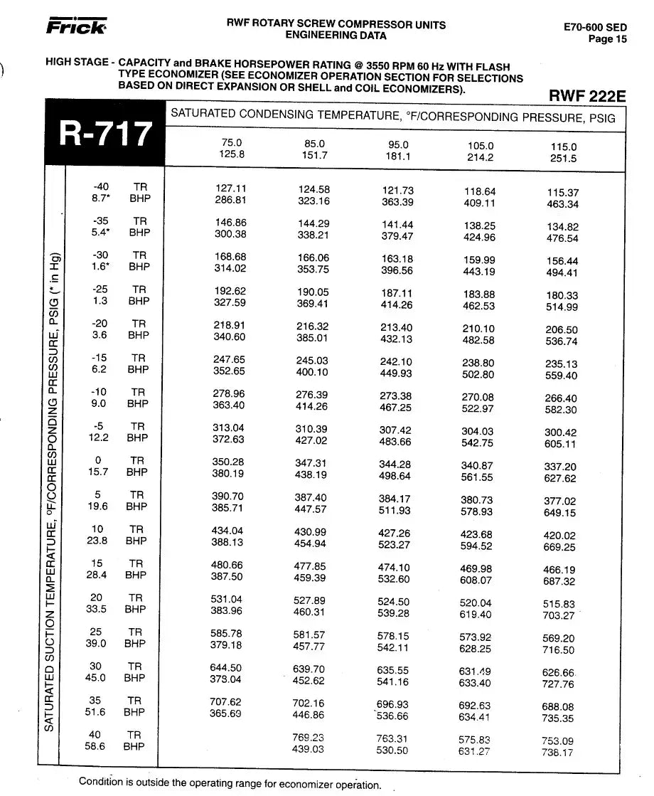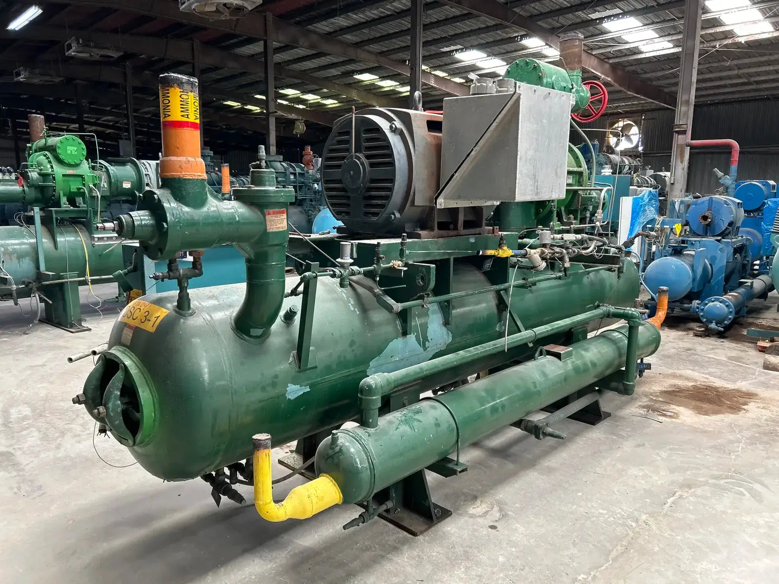 Frick RWB-II-222E Rotary Screw Compressor Package. Model No: RWB-II-222E. Serial No: S0652RFMPTHAC03. Refrigerant: R-717. Max Design Pressure: 300 PSIG. Frick Rotary Screw Compressor: TDSH233L. Serial No: 1699F. Refrigerant: NH3/R22. Volume Ratio: 2.2-5.0. Max Speed RPM: 3600. Max Design Pressure: 362. American Refrigeration Rebuilt: Date: 7/2017, Job No: 20736. Certified by Frick Oil Separator: National Board: 134950, MAWP: 300 PSI @ 200 F, MDMT: -20 F @ 300 PSI. Frick Quantum HD Retrofit Control Panel.