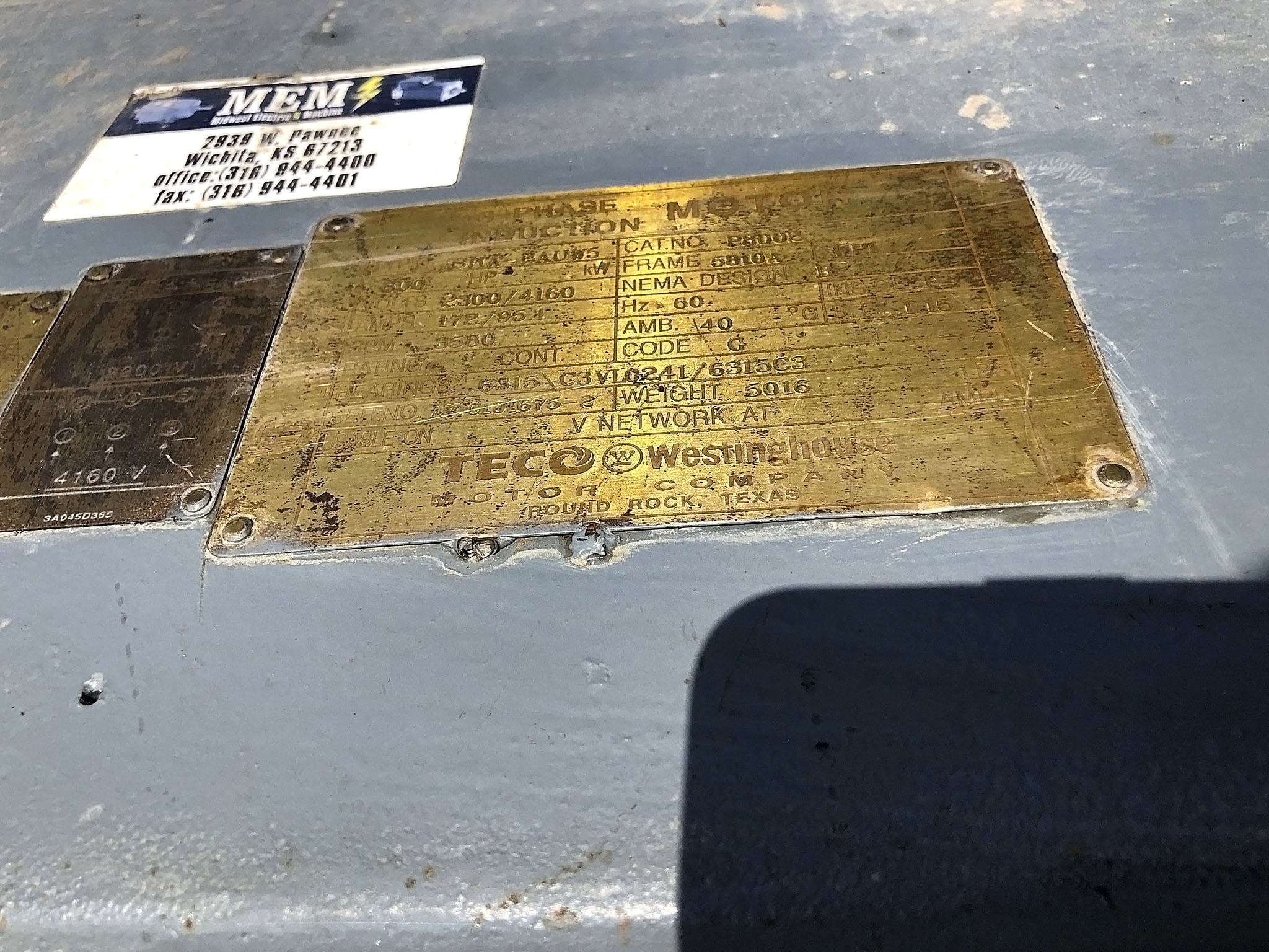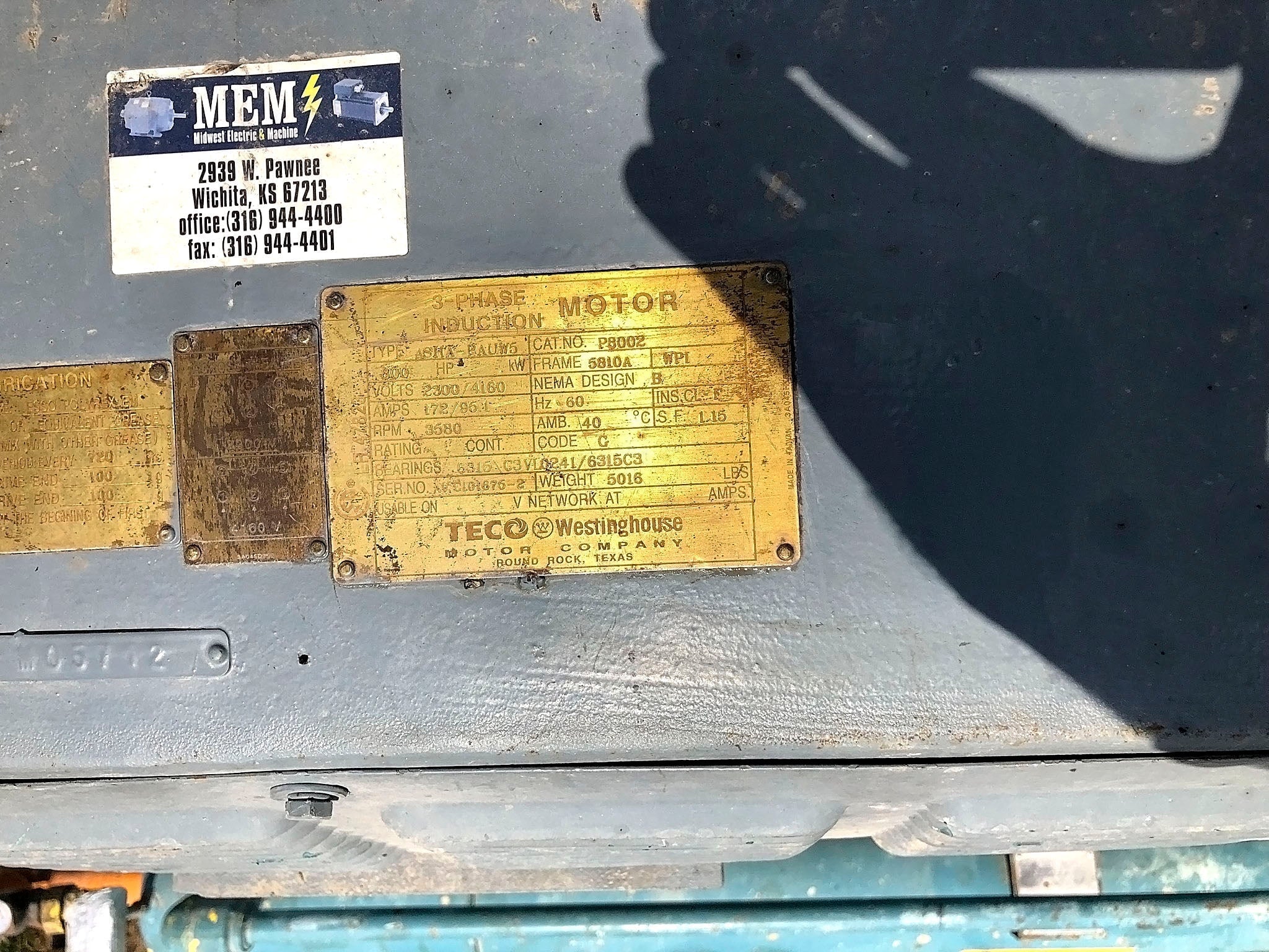 FRICK Screw Compressor Sales Order: 280802-07 Model: RWB II-316 Serial # S0245NFMPTHBA3. Screw Model: TDSH283S15470. Separator: N/B #117679 Thermo-siphon: N/B #114577. Volume Ratio: 2.2/5.0, TECO MOTOR 800 HP, BHP 735.5 Frame 5810A, TYPE: ASHA, 4160 VOLT 3 PHASE 60 HZ. AMPS: 172 / 95 , NEMA DESIGN B, BEARINGS: 6314C3/6314C3, RPM: 3570.