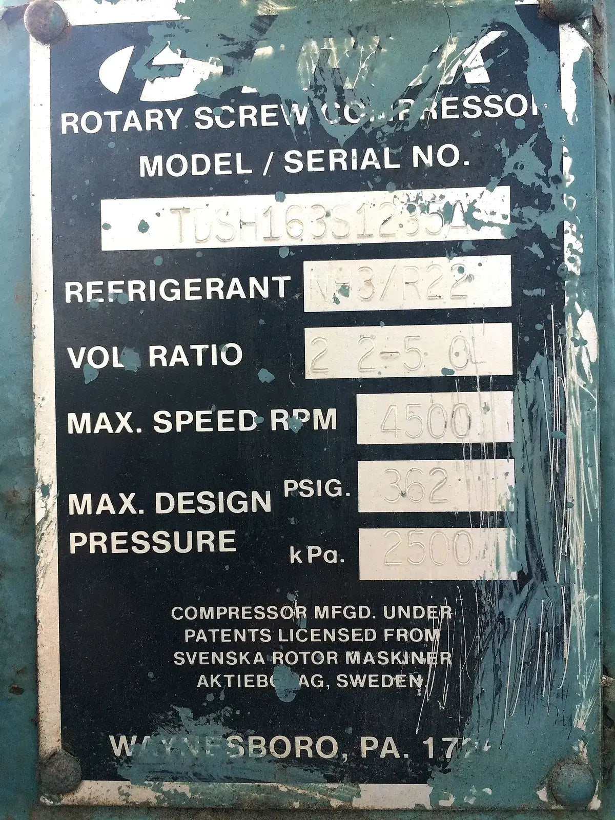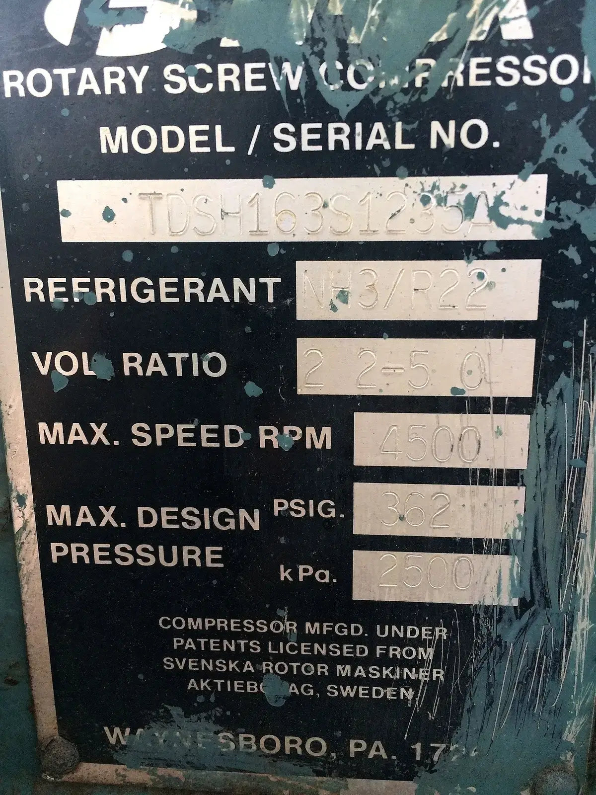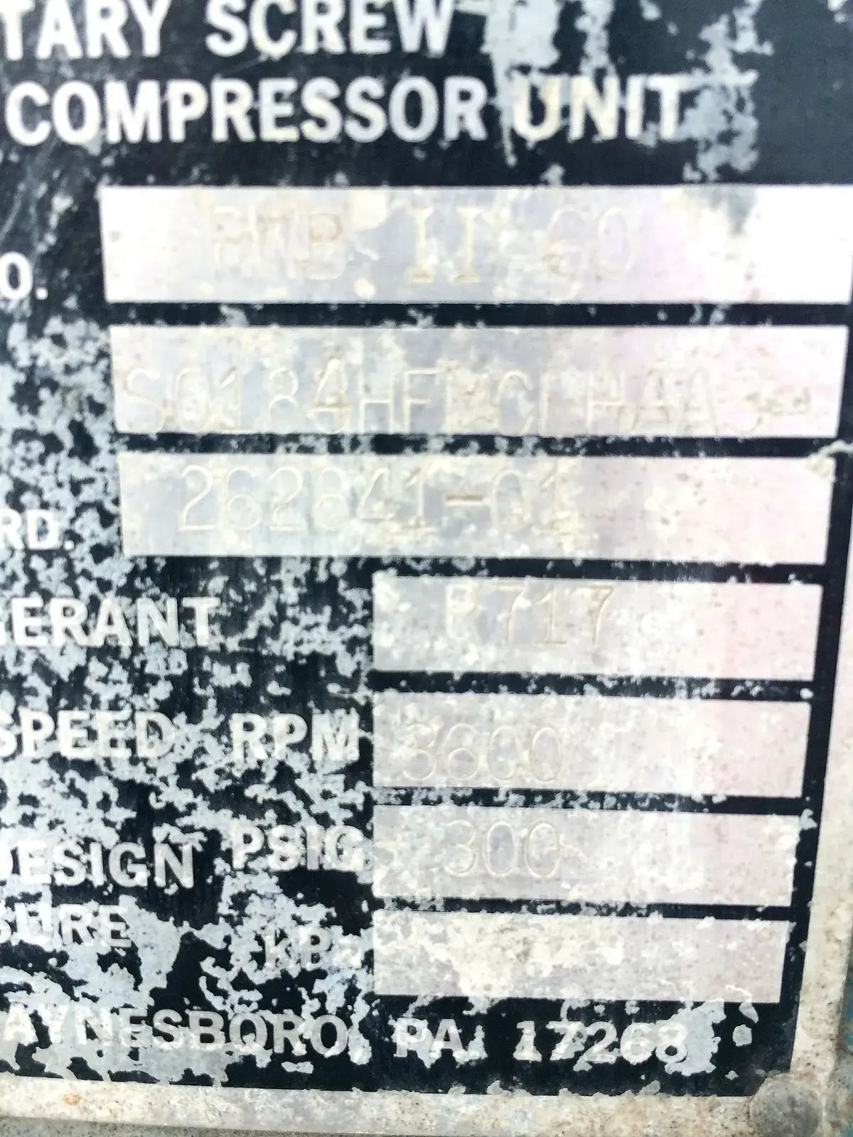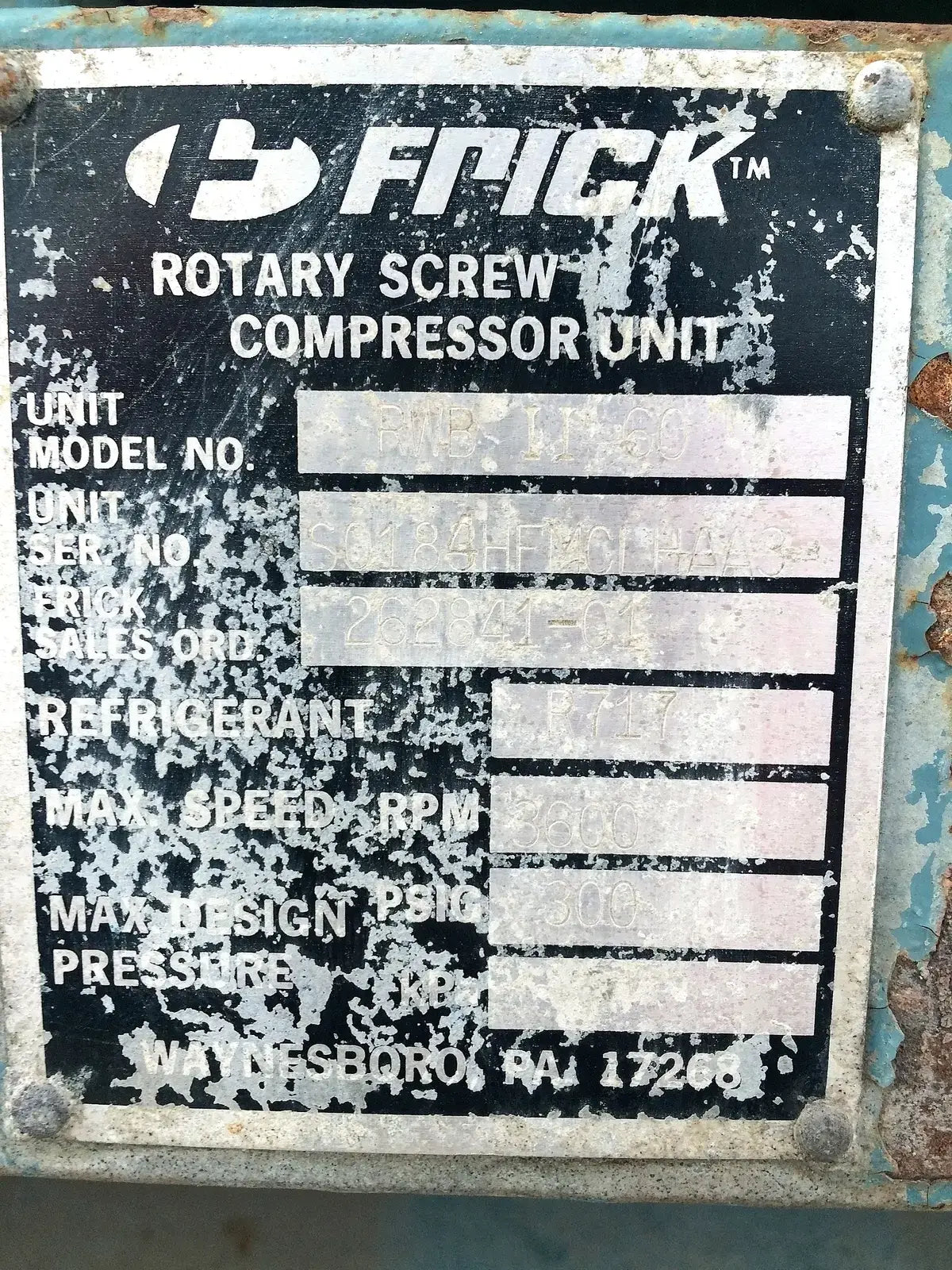 Frick RWB-II-60 Rotary Screw Compressor Package (Frick TDSH163S, 150 HP 230/460 V, Frick Micro Control Panel)
