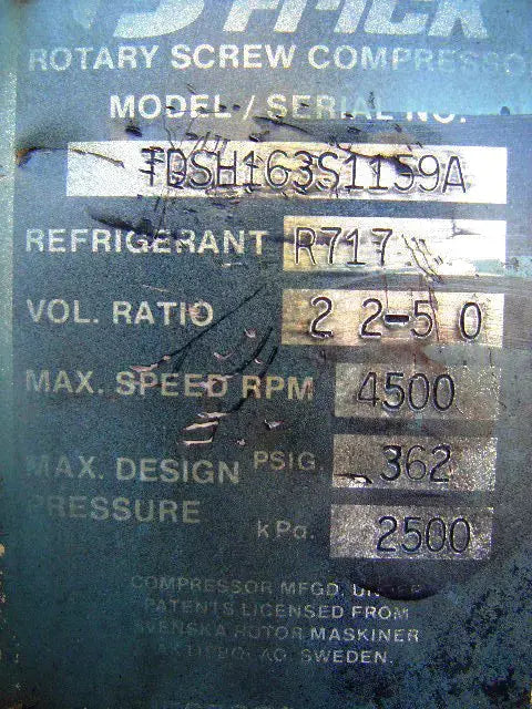 - Compressor Manufacturer: Frick