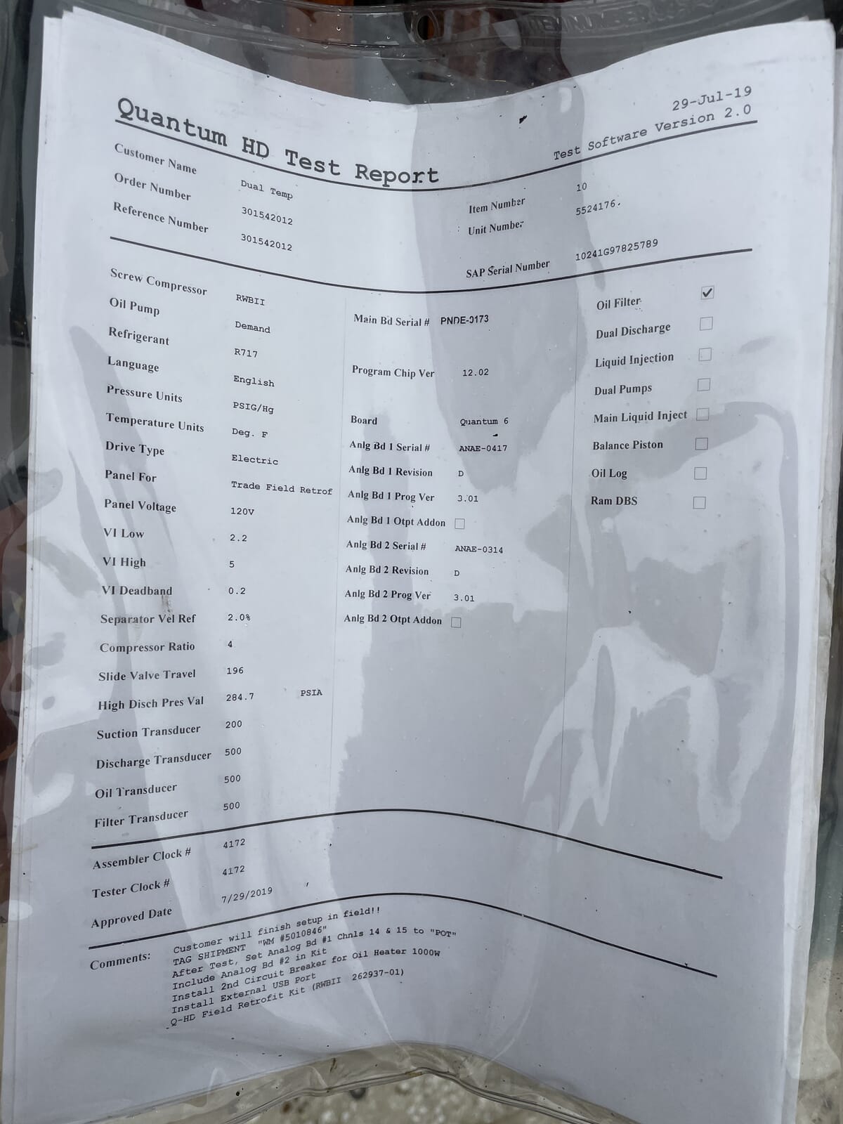 - Micro Control Panel Description: Frick Quantum HD Control Panel - Serial No: 10241G97825789. Quantum HD Field Retrofit Kit.