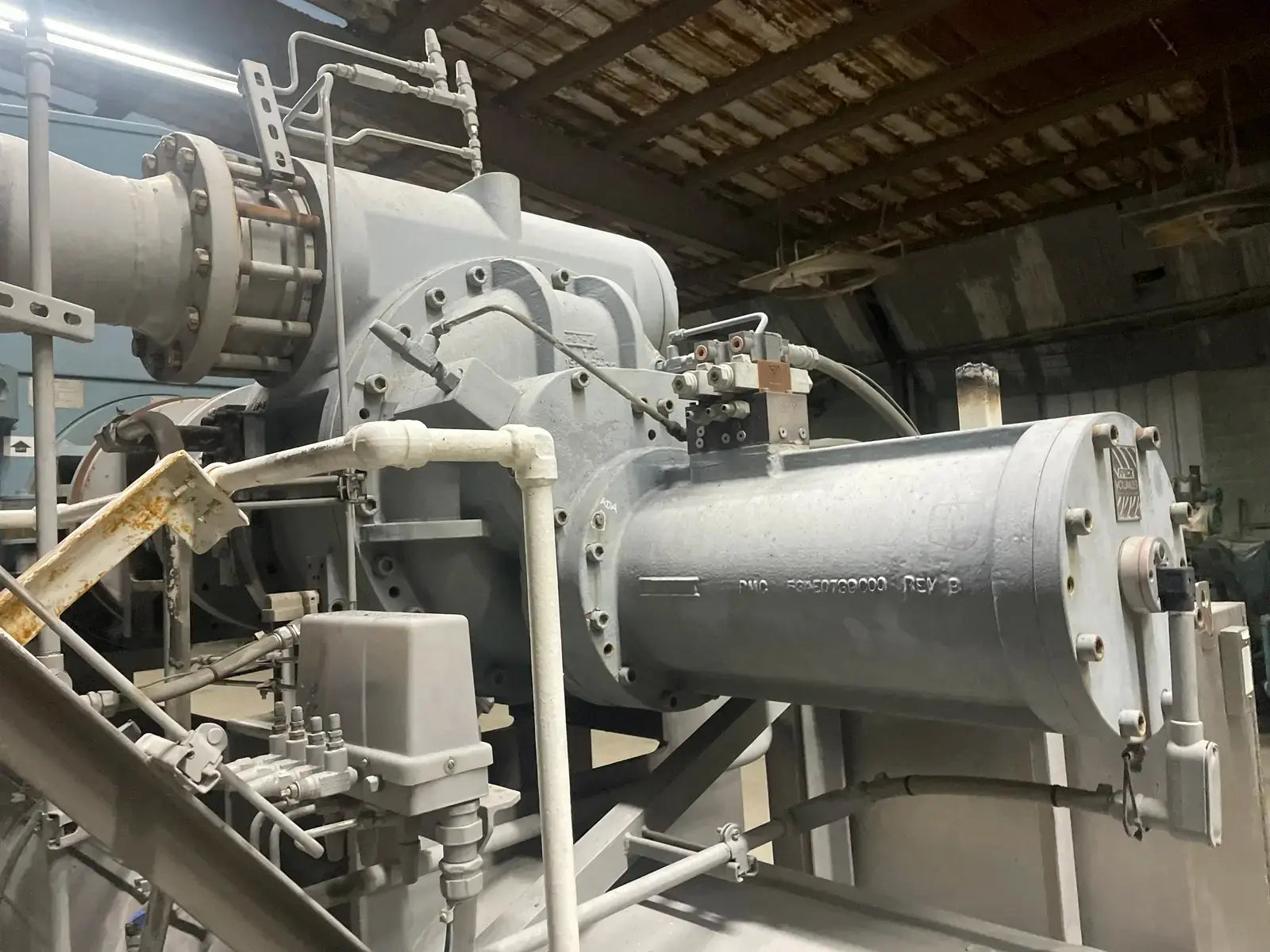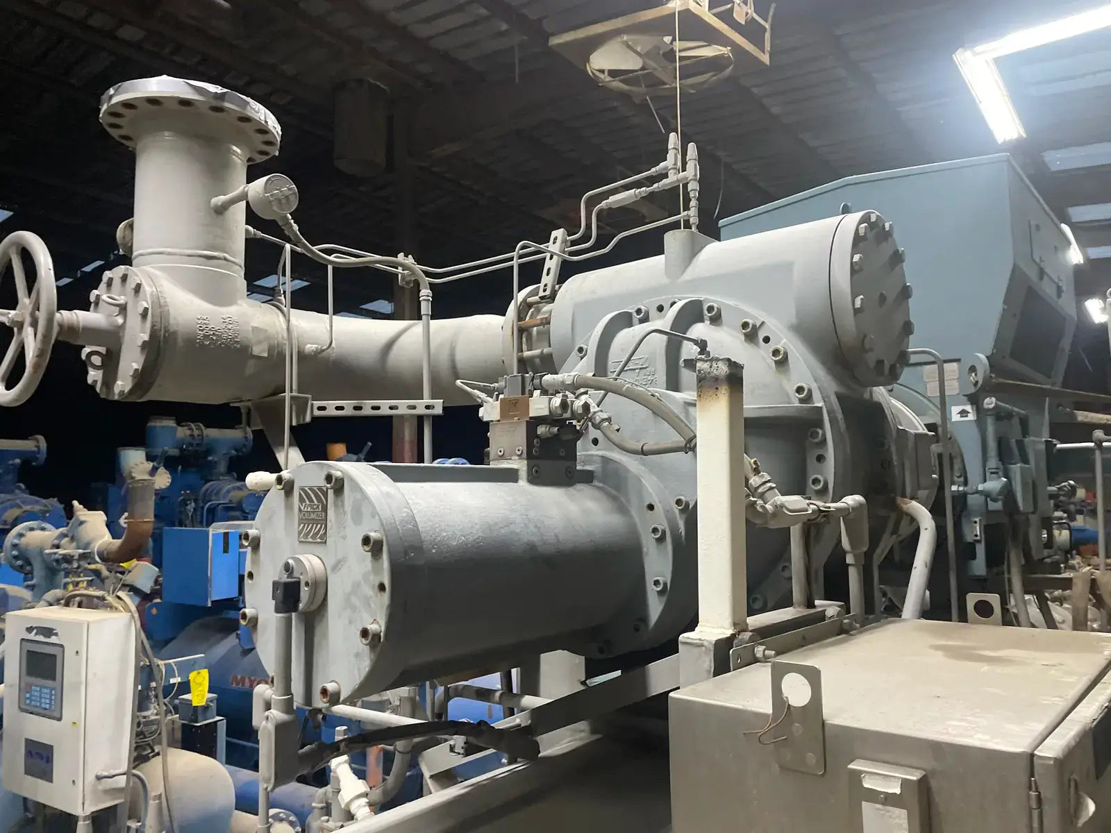 Frick Rotary Screw Compressor Package. Rotary Screw Compressor Unit Package Details: Sales Order No; RWF-316. Serial No: 0153. Refrigerant: Multi-Refrigerant. Max Design Pressure: PSIG: 300. kPa: 2068. Year: 2008. Frick Bare Screw Compressor Details: Model/Serial No: SGC28130337Z. Refrigerant: MixedGas. Volume Ratio: 2.2-5.0. Max Driver Speed RPM: 3600. Swept Volume FT/Min Max Speed: 1890. Max Allowable Pressure PSIG: 400. Year of MFR: 2008. Previously Rebuilt by Apex Refrigeration Services. Rebuilt Date: 7/17/2015. Package has a Frick Quantum HD Control Panel, Powered by an 800HP, 4160Volts, 3560RPM, TECO Westinghouse World Series Induction Motor.