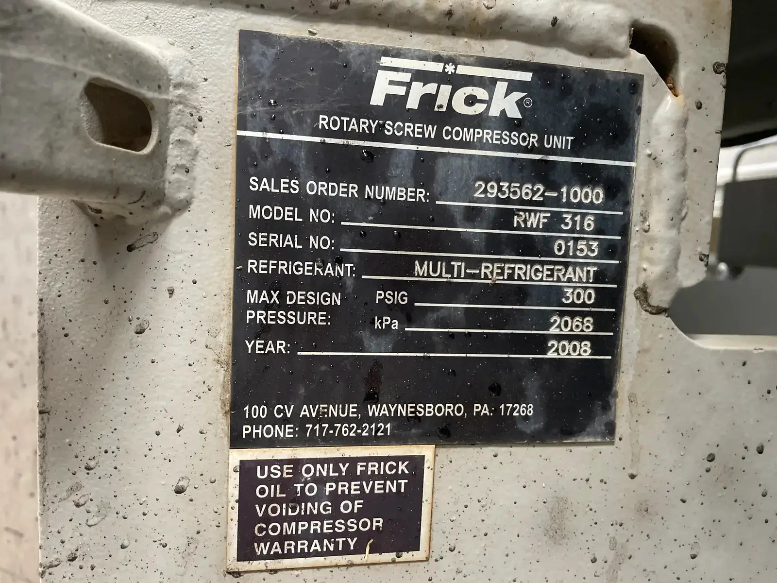 - Compressor Manufacturer: Frick