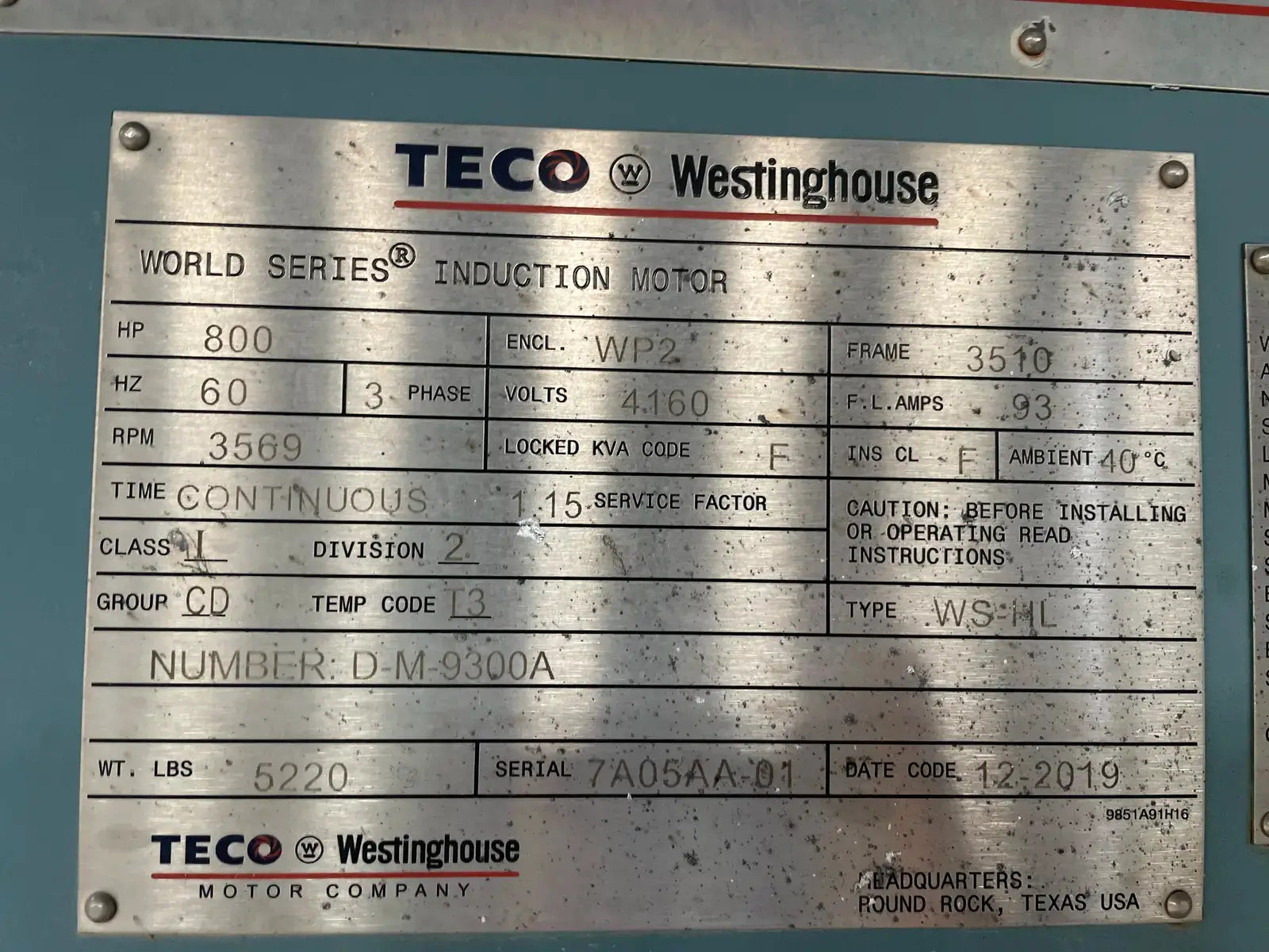 - Motor Manufacturer: Teco