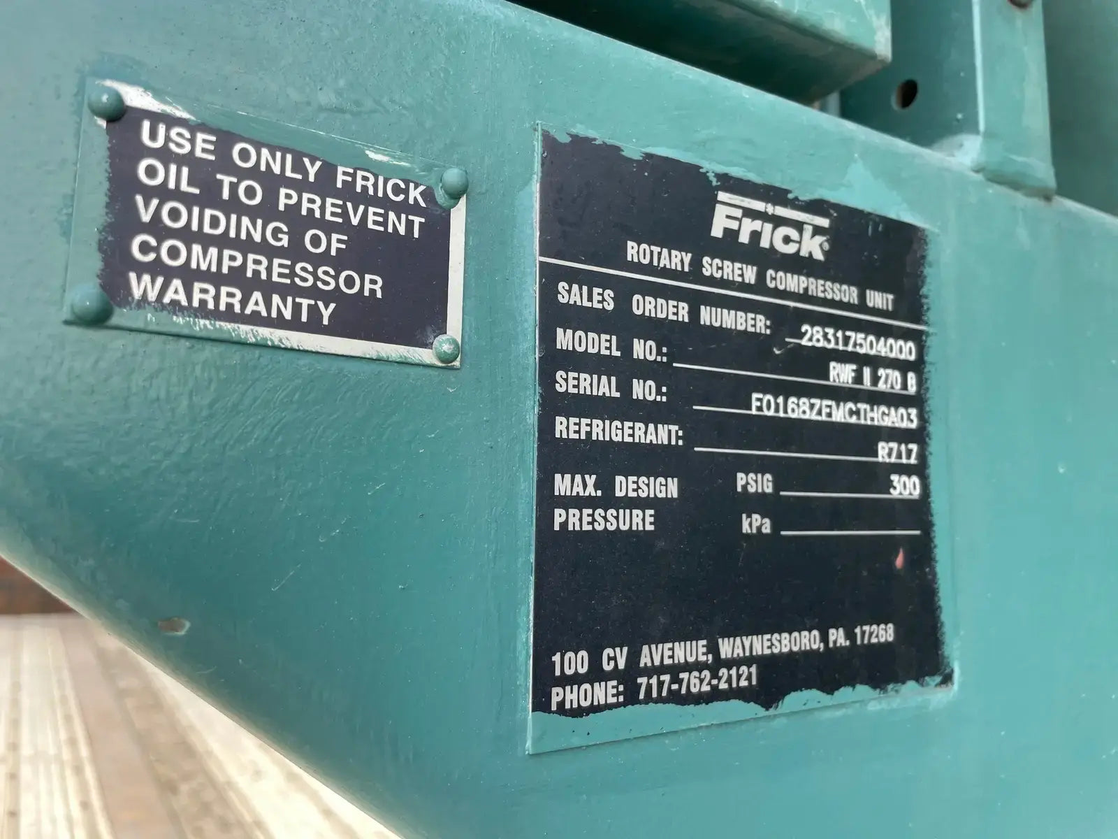 - Compressor Manufacturer: Frick