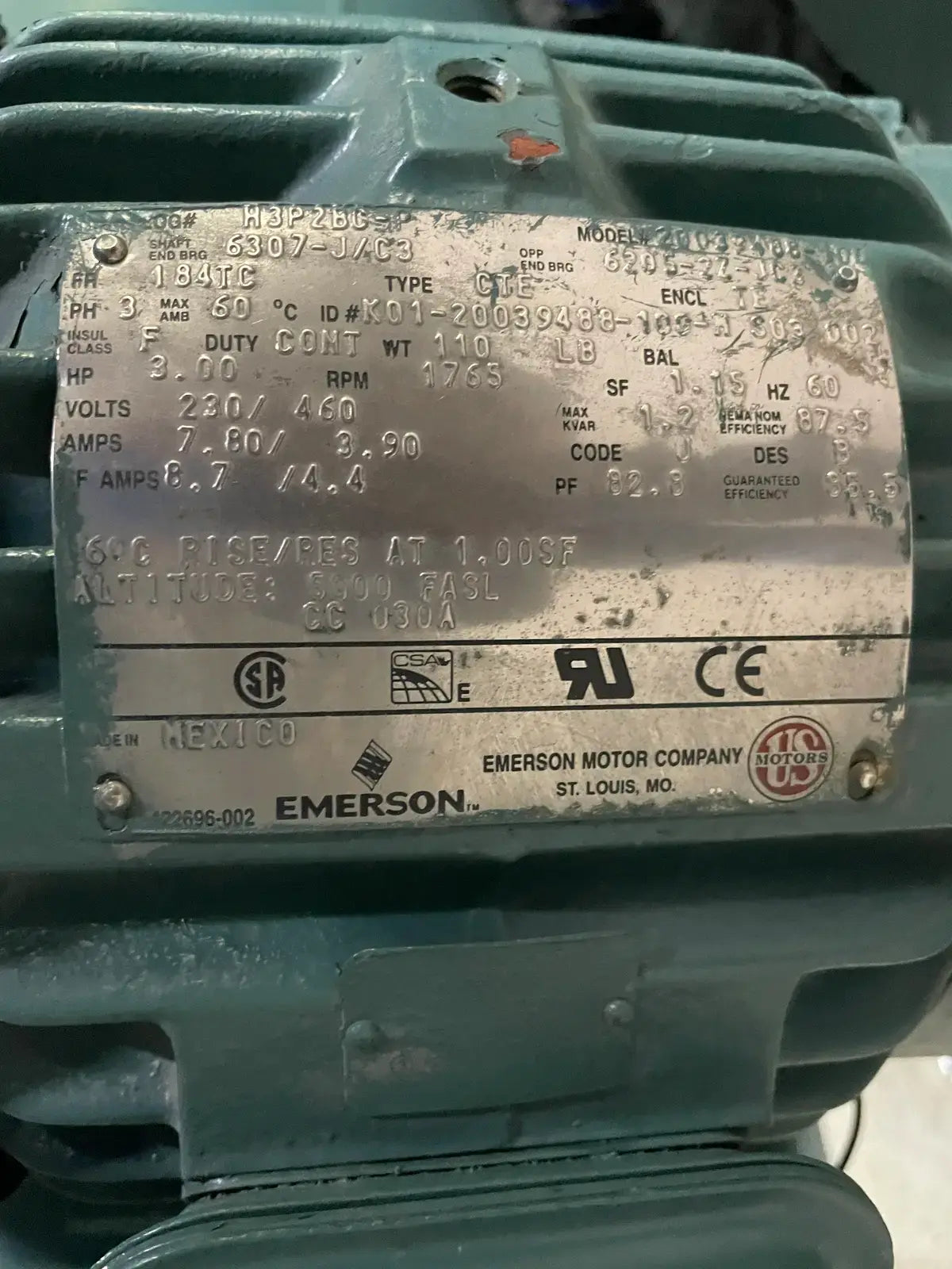 - Motor Manufacturer: Emerson