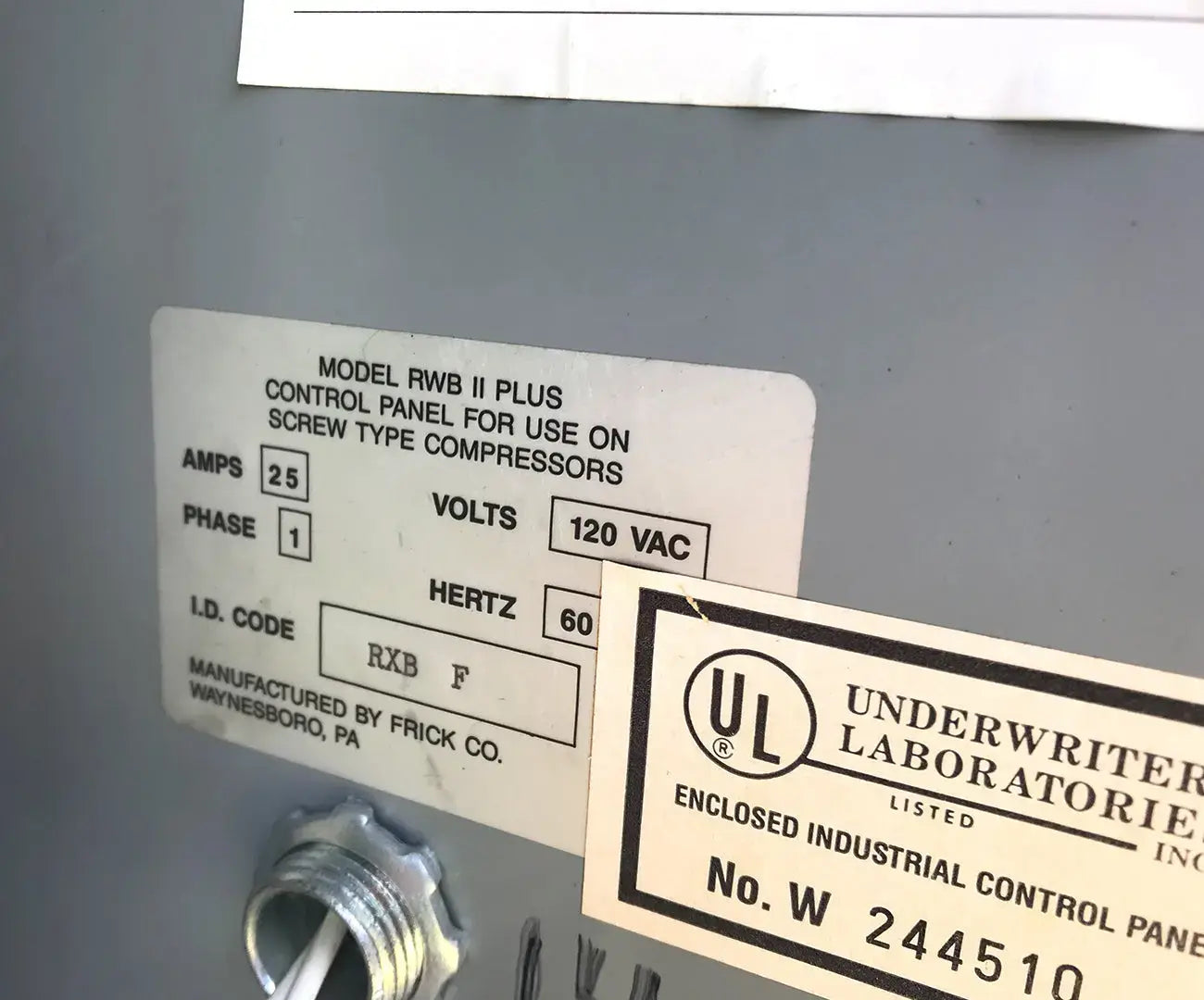 Frick RXB-39 Rotary Screw Compressor Package (Frick XJS120L, 100 HP 208-230/460 V, Frick Micro Control Panel)