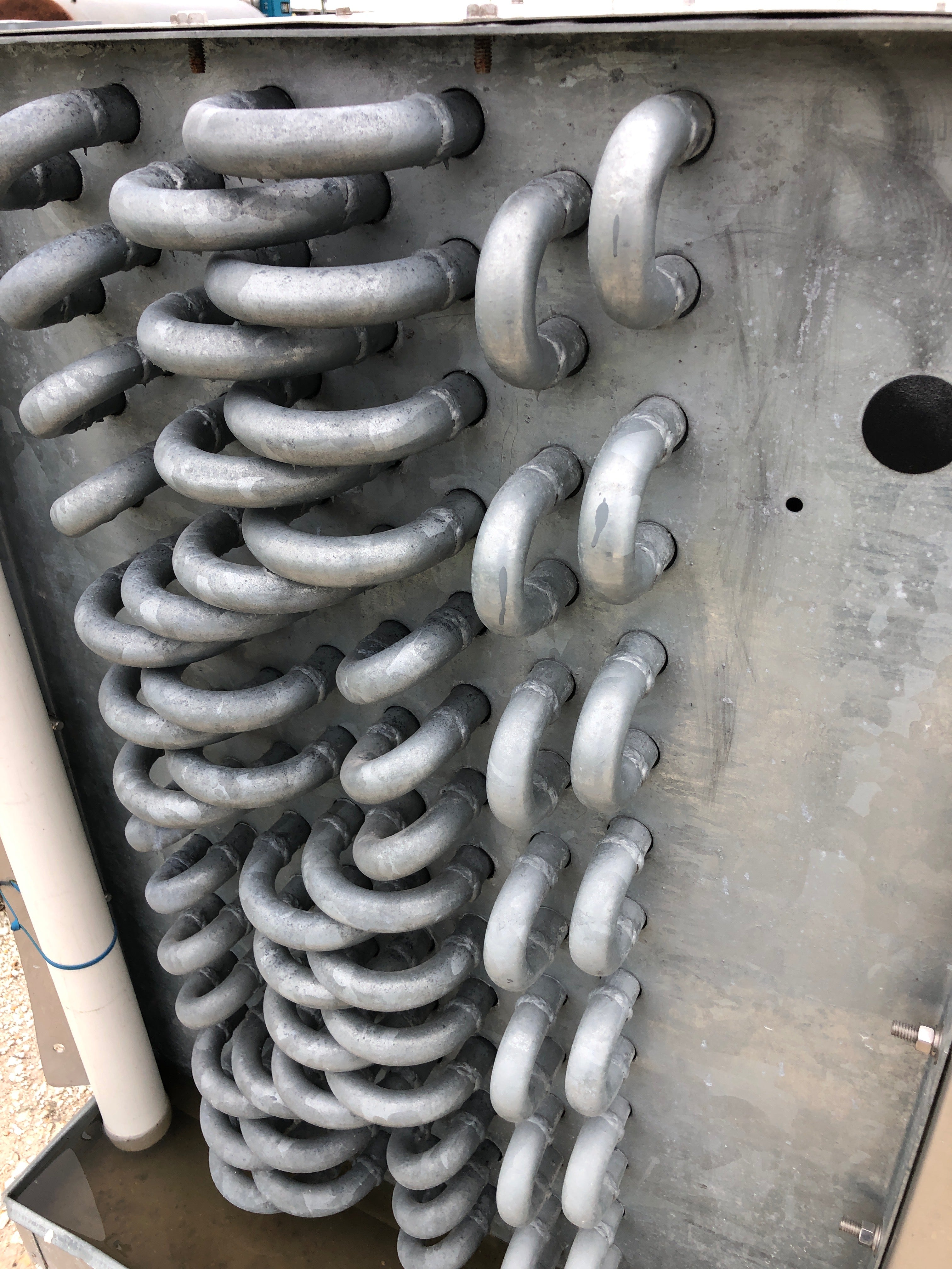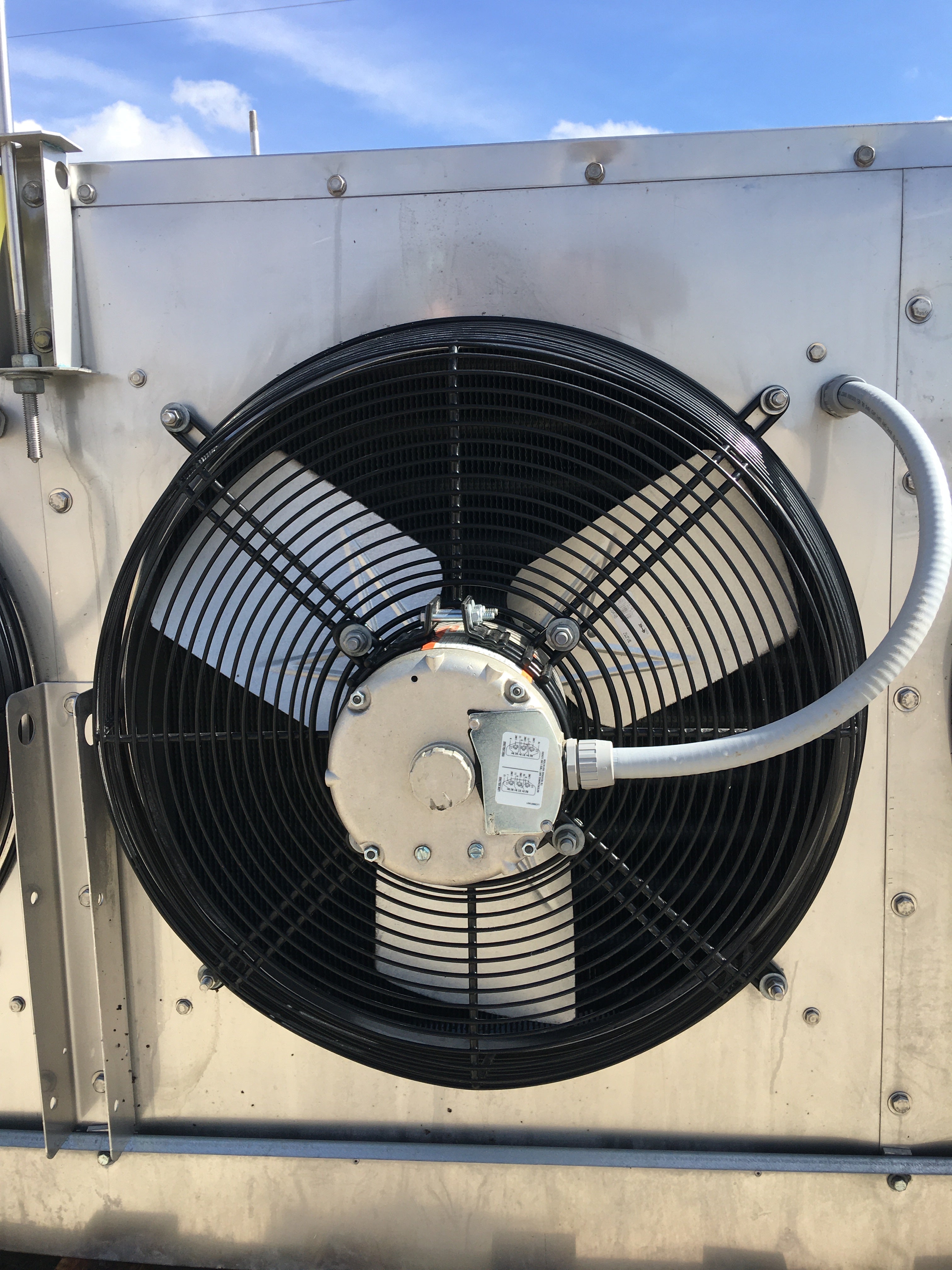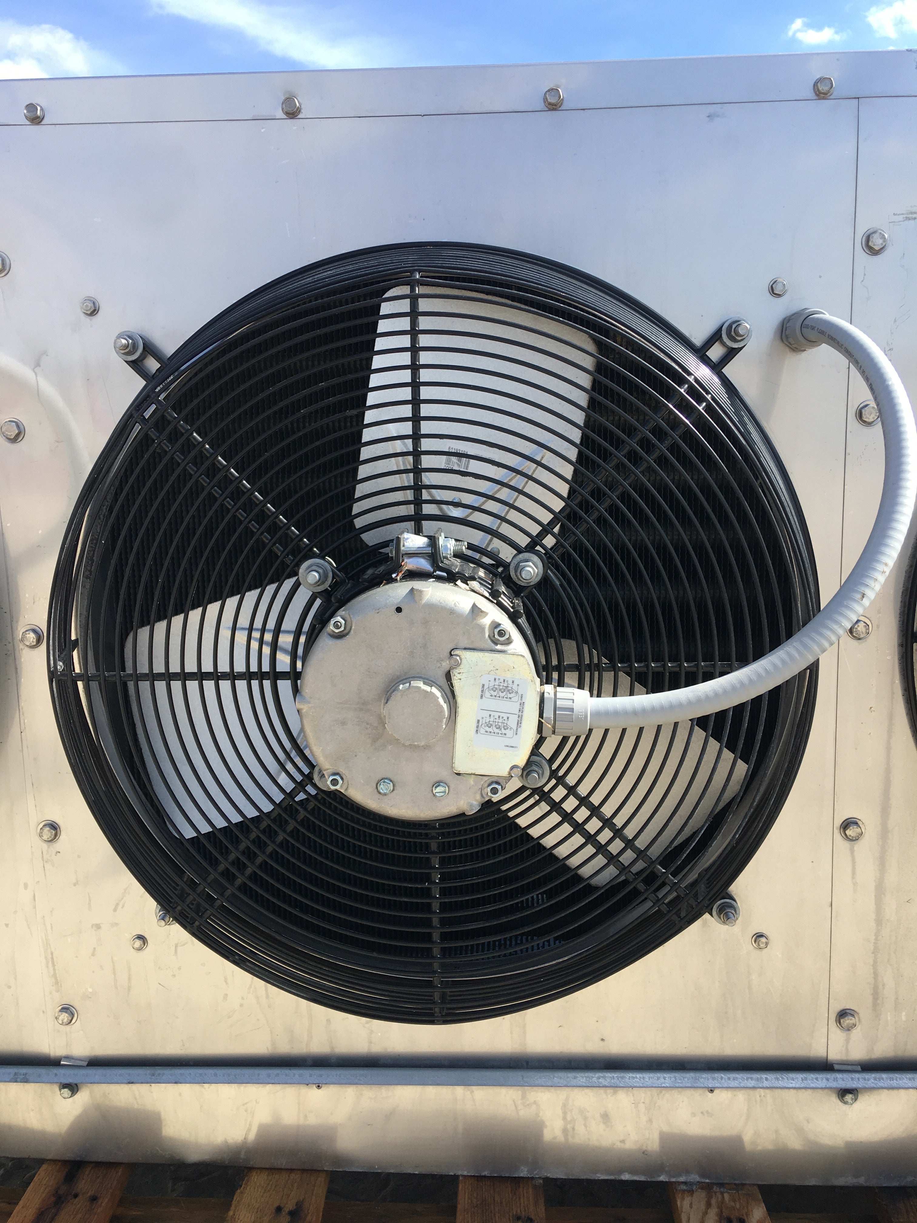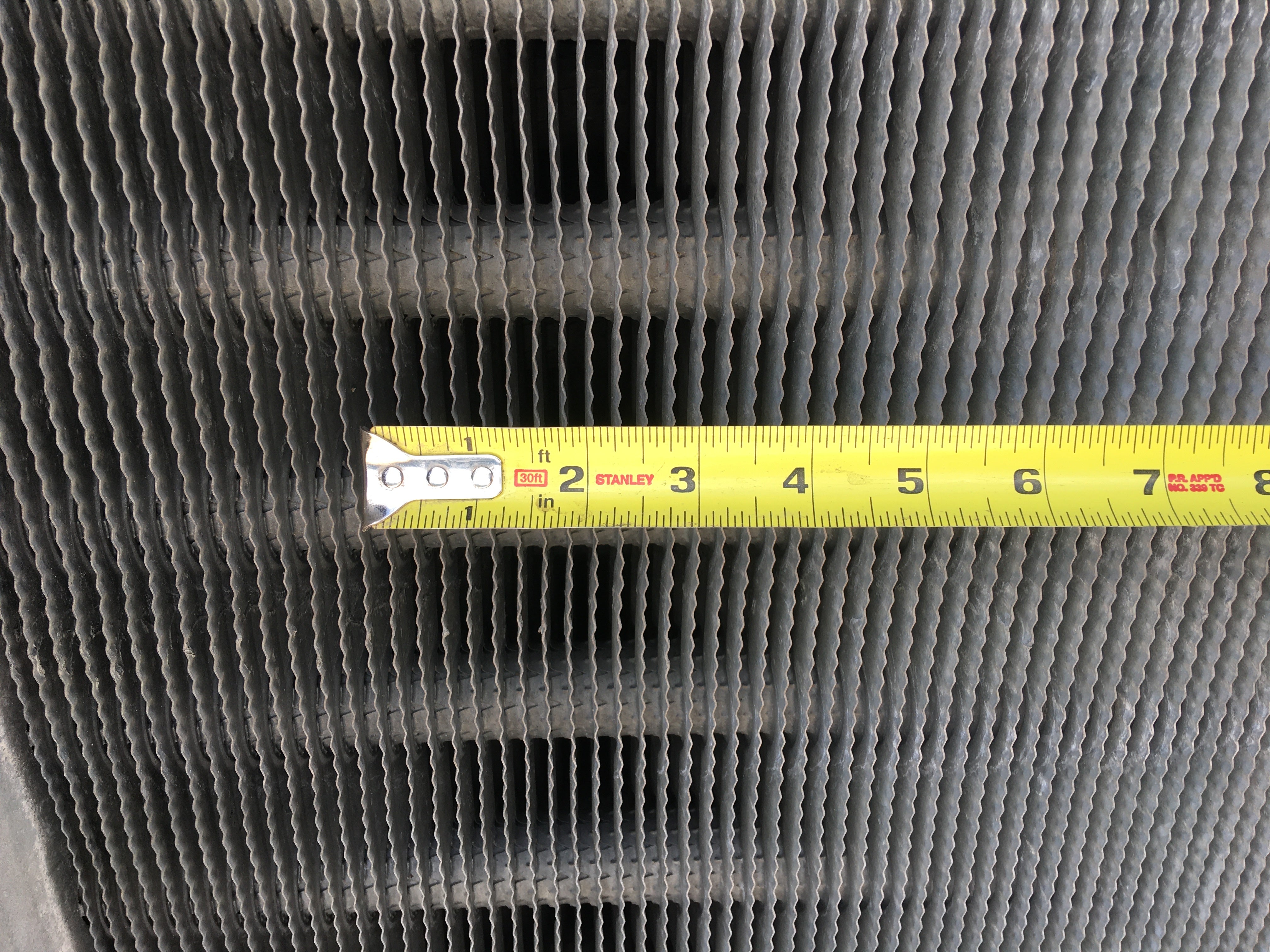 Frick SCS 584TH LH1 Ammonia Evaporator Coil- 22.5 TR, 4 Fans (Low/Medium Temperature) This Evaporator can use either wet or frosted coils. A wet capacity of 18000 (BTUH / °F TD) with an estimated tonnage of 22.5 (TR) @15TD. A frosted capacity of 16350 (BTUH / °F TD) with an estimated tonnage of 20 (TR) @15TD. Air Flow of 20465 CFM. A Coil Volume of 6.56. Recirculated coils. 5 Fans with a sound level of 69.8 dbA. 4 Fins per inch. The evaporator coil is the component in your industrial refrigeration system that absorbs the heat from the air and cools the environment. The higher the tonnage or BTU capacity, the larger the area that can be cooled down or the cooler you can make the area. The evap coil works in coordination with your refrigeration system including screw or reciprocating compressors, evaporative condensers and pressure vessels. For more info contact our Genemco Sales team at (979) 268-7447 or sales@genemco.com