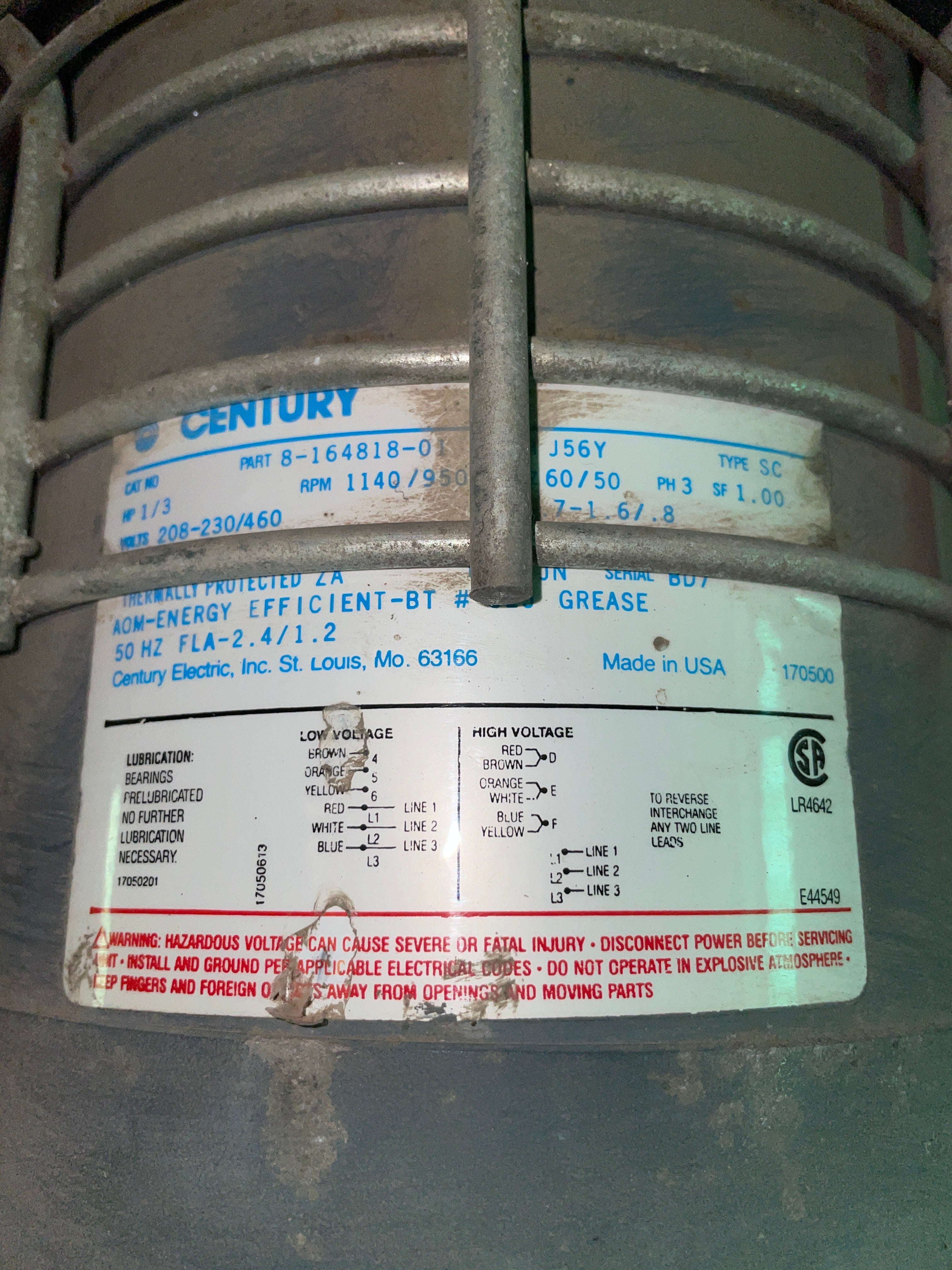- Motor Hertz (Hz): 60