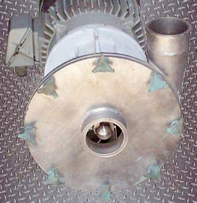 Fristam Sanitary Centrifugal Pump. Model FP1052 1. Serial 5122119. Impeller diameter: 11 in. Capacity: 380 gpm. Reliance Electric Motor, 20 hp, 1760 rpm, 460 V, 24.0 amps, 60 Hz, 3 phase. Inlets: (1) 4 in. S-line fitting. Outlets: (1) 4 in. S-line fitting. Overall dimensions: 33 in. L x 16-1/2 in. W x 20 in. L.