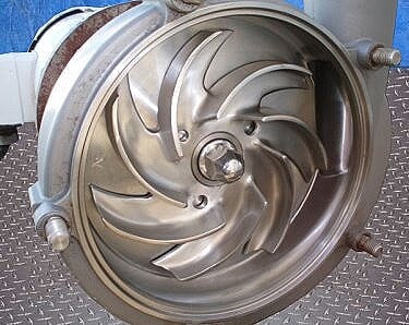 Fristam FPX Series Centrifugal Pump. Model: FPX3541-190. S/N: FPX354198875. Impeller diameter: 7-1/2 in. Baldor Industrial Motor, 5 hp, 1750 rpm, 230/460 V, 13.4/6.7 amps, 60 Hz, 3 phase. Inlets/outlets: (1) 3 in. dia. S-line fitting. Outlets: (1) 2-1/2 in. dia. S-line fitting. Overall dimensions: 2 ft. 2 in. L x 1 ft. 1 in. W x 1 ft. 1 in. H. RTD