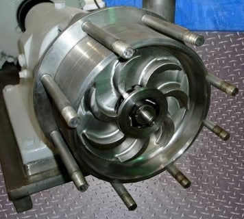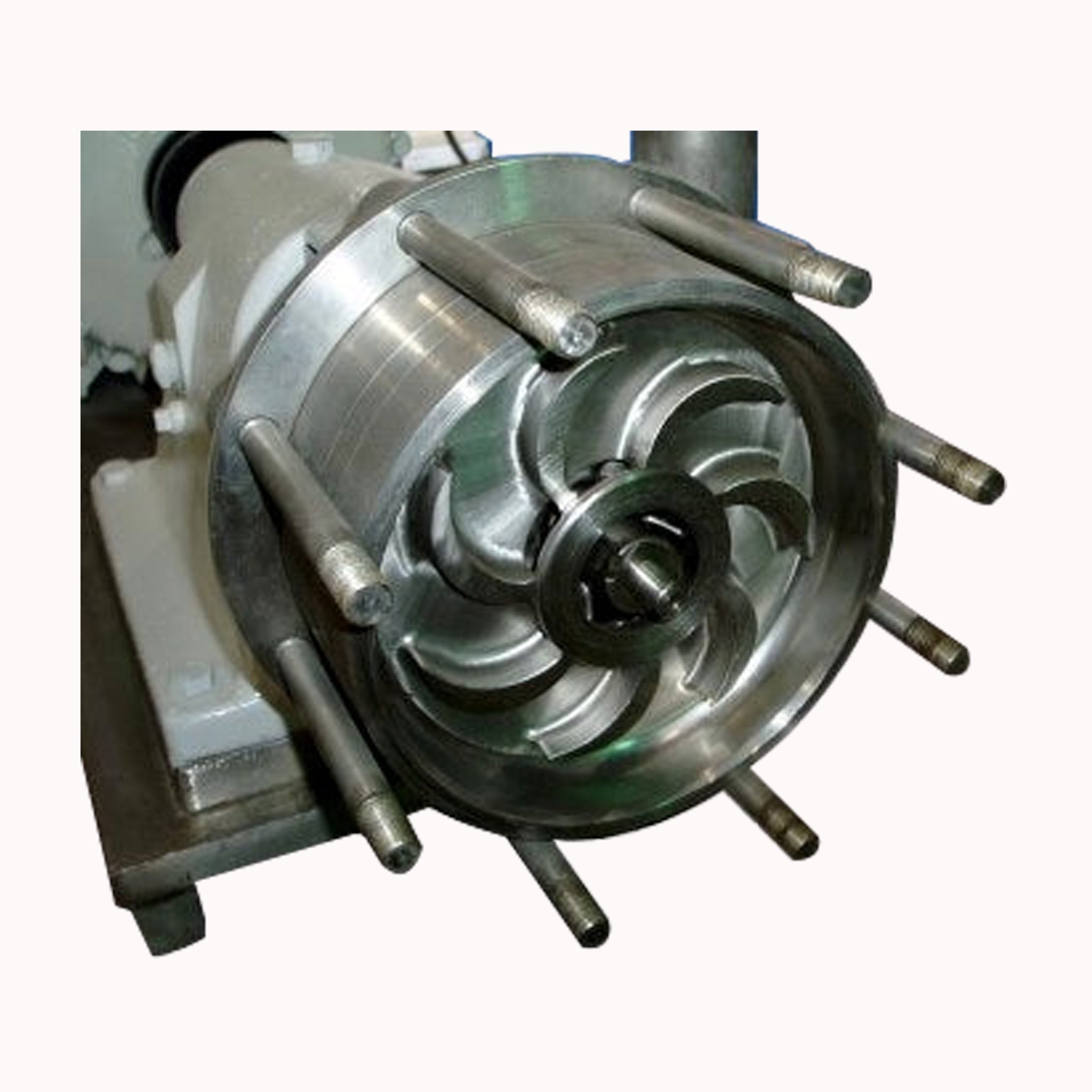 Fristam High Pressure Sanitary Pump. Model FM332-175, S/N FM332 74005. Inlet/ outlet 2.5 in. Pump is three stages and is designed to pump up to 200 gpm at 200 psi and 500 feet of head, with 60 hp Baldor motor, 3,550rpm, 230/460 V, 60hz, 3-phase. Current setup will do 230 gpm 180 psi 410 feet