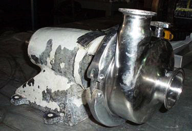 G&H Centrifugal Pump. Model: GABR. S/N: 73-8-10652. Nominal capacity: 90 gpm @ 12 head feet (6.6 psi using specific gravity of water = 1). Displacement per Revolution: 0.045 gal. Impeller diameter: 5 in. Inlets: (1) 2 in. dia. S-line fitting. Outlets: (1) 1 ½ in. S-line fitting. Overall dimensions: 1 ft. 1 in. L x 9 in. W x 8 in. H.