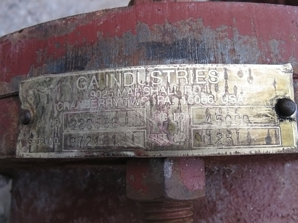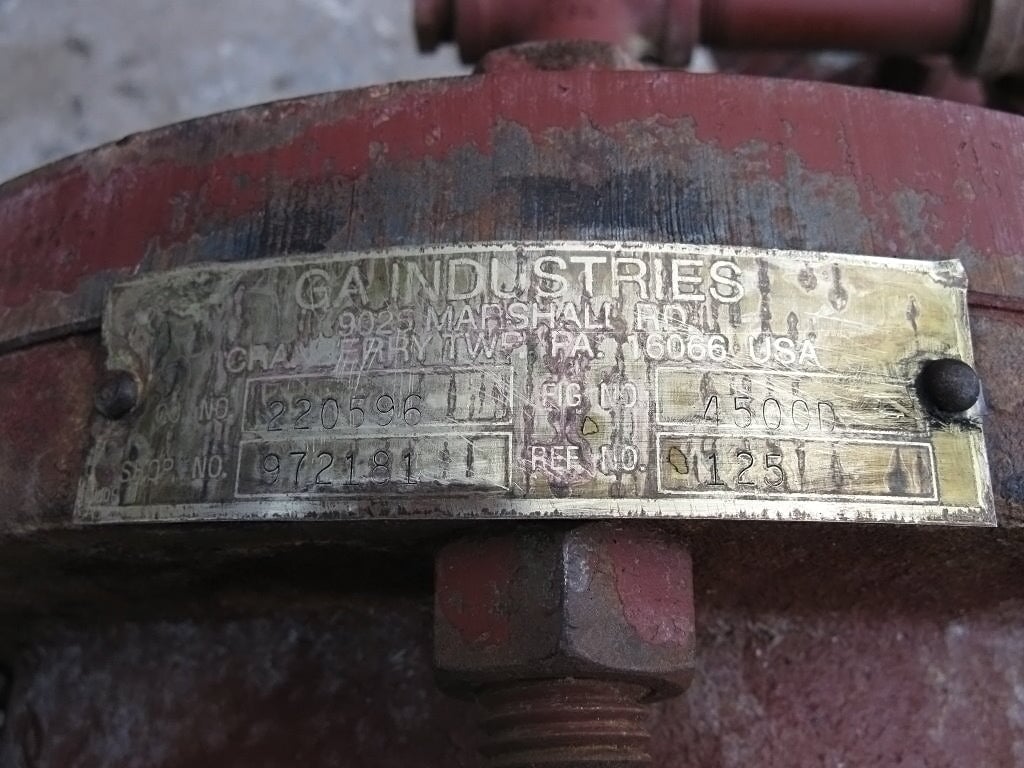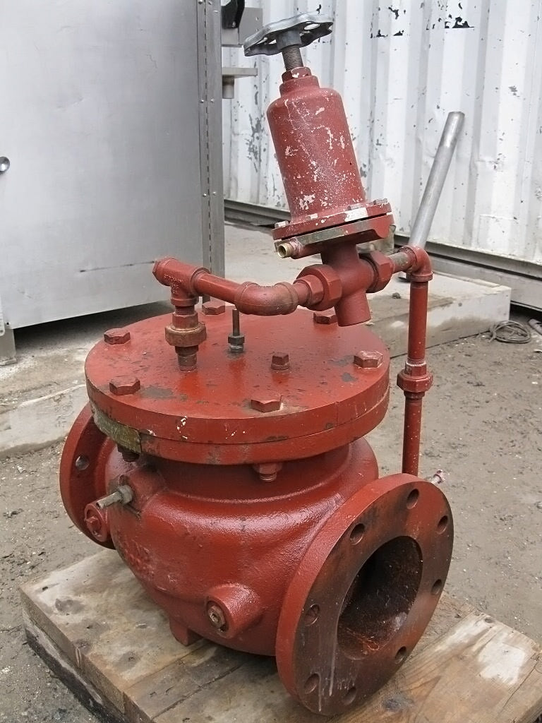 Valve. Inlet/outlet: (2) 6 in. dia. flanges. With (8) 7/8 in. dia. mounting holes. 3-5/8 in. adjacent, 9-1/2 in. opposite. Overall dimensions: 1 ft. 8 in. L x 1 ft. 6-1/4 in. W x 2 ft. 6-1/2 in. H.
