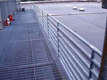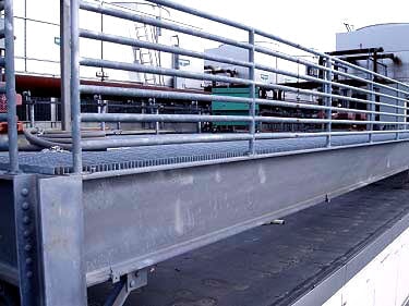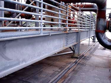 Galvanized Steel Decking Support System. Includes: 5,092 square feet of Grating, 350 feet of 43 inch high handrails, 1460 ft. of 24 inch I-beams and 662 feet of support bracing. Was used to hold (12) 800 ton evaporative condensers / fluid coolers that were never commissioned.