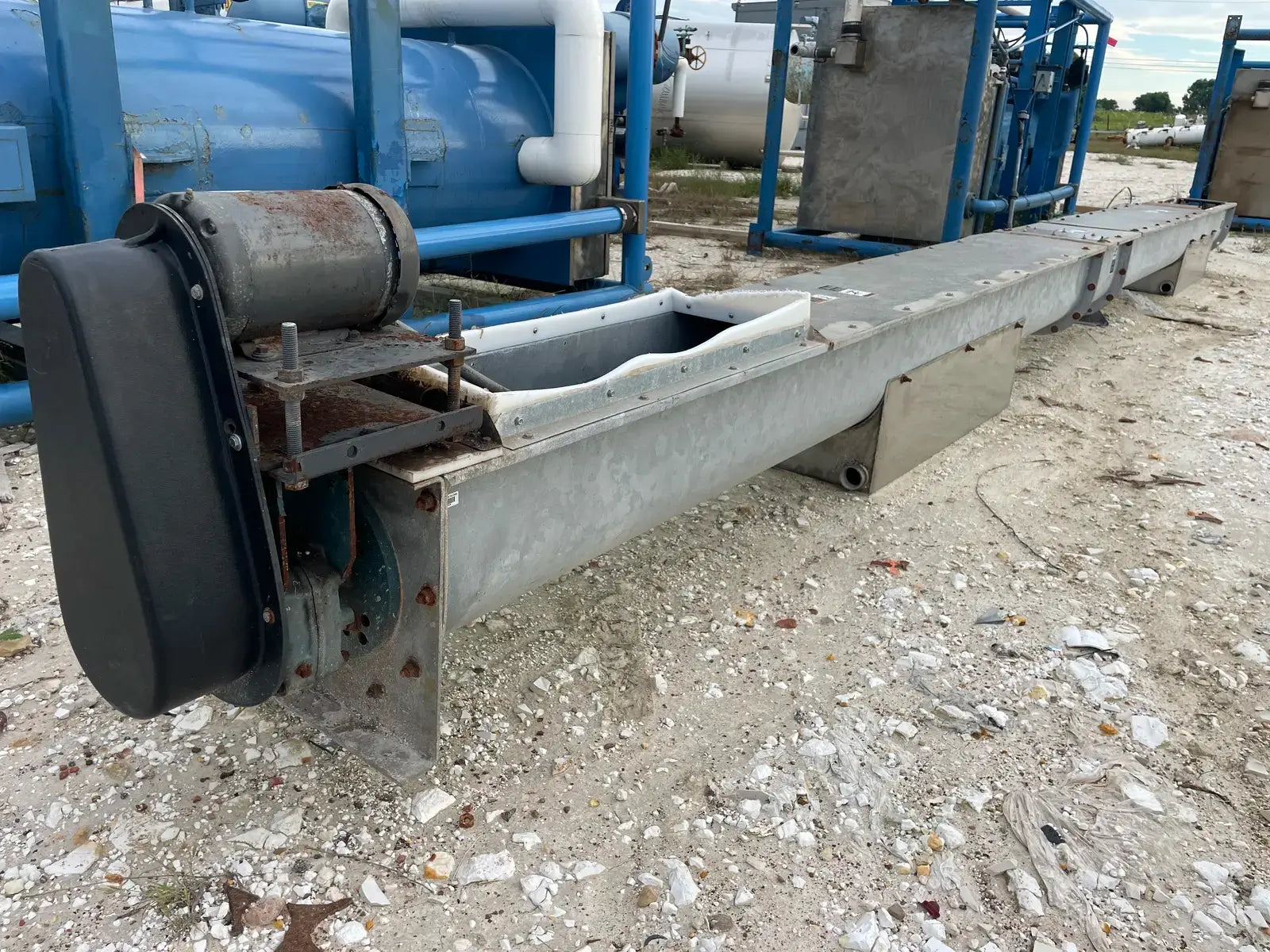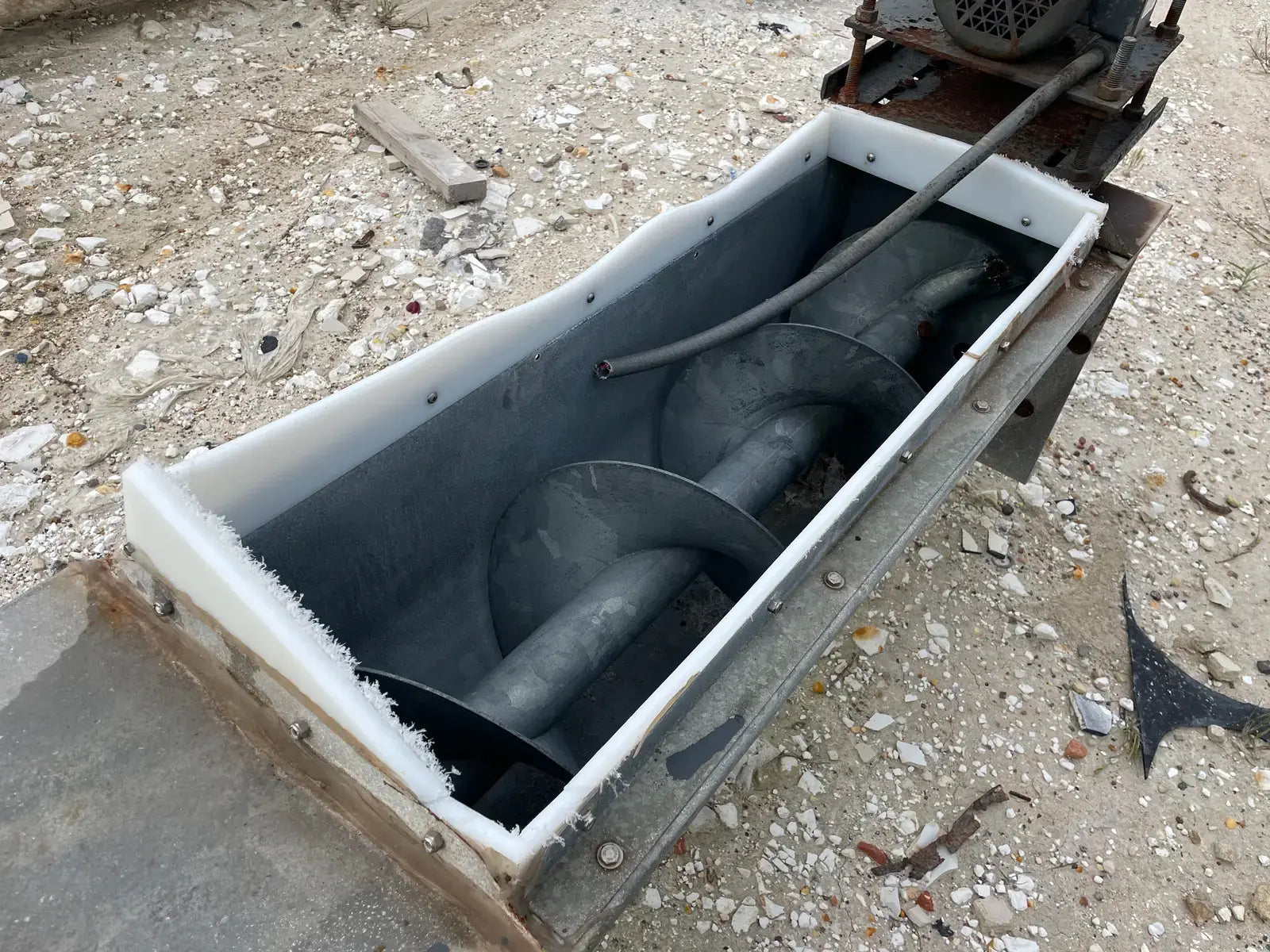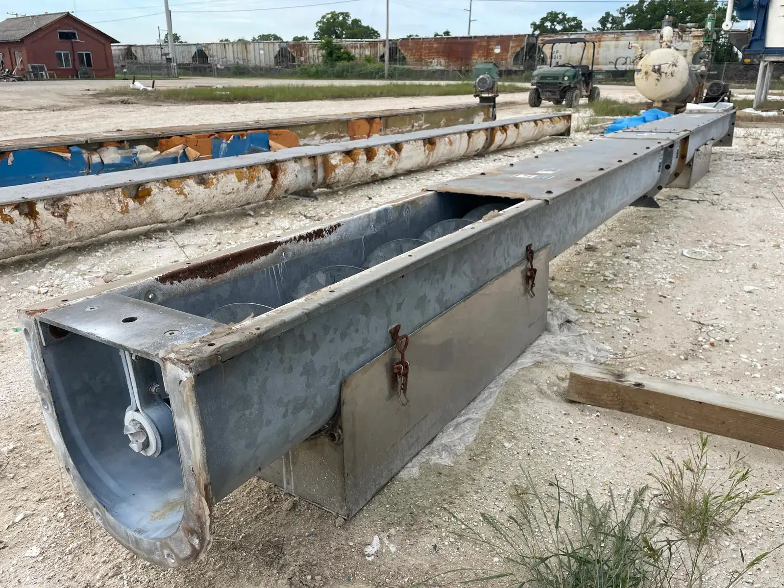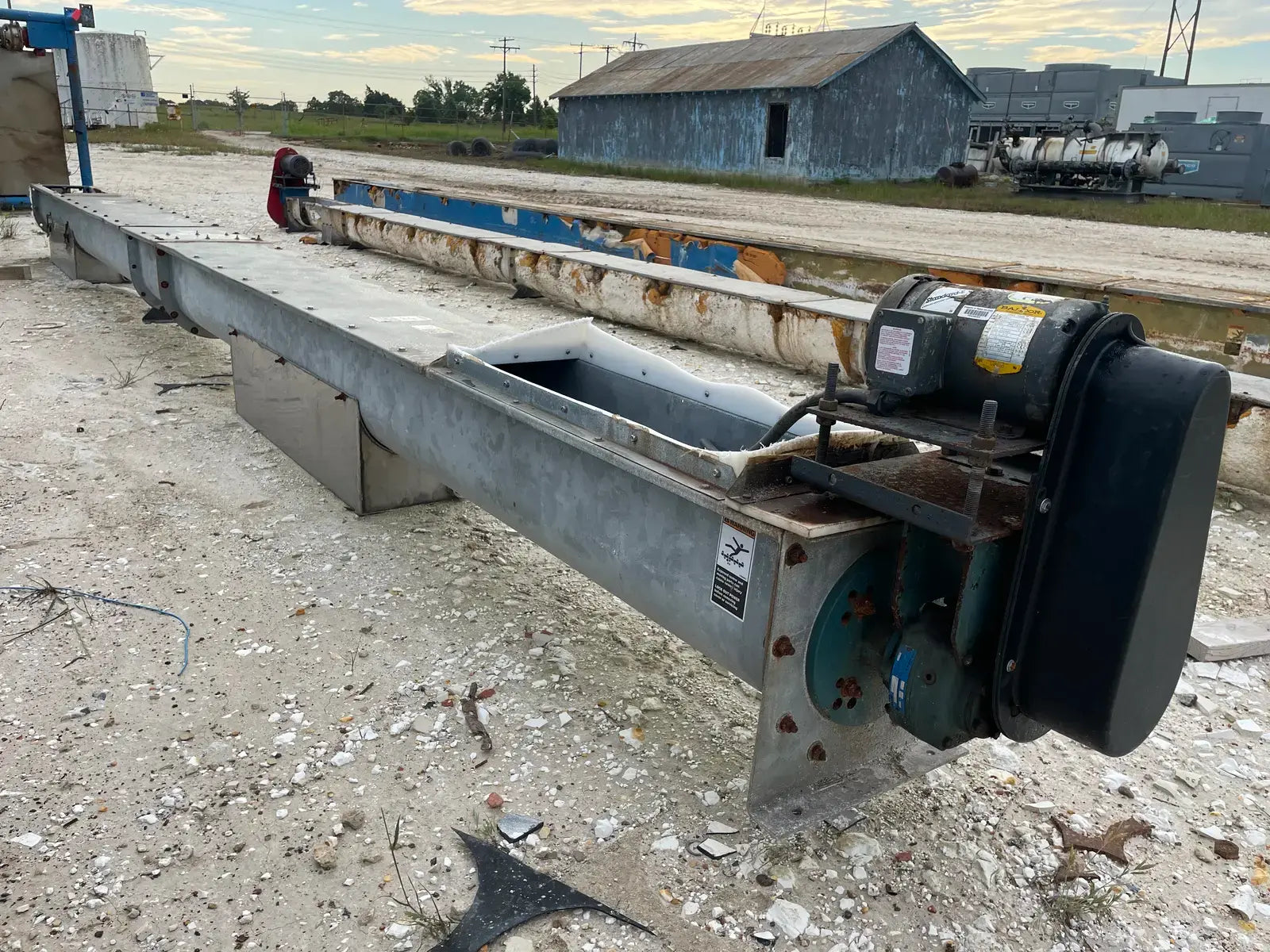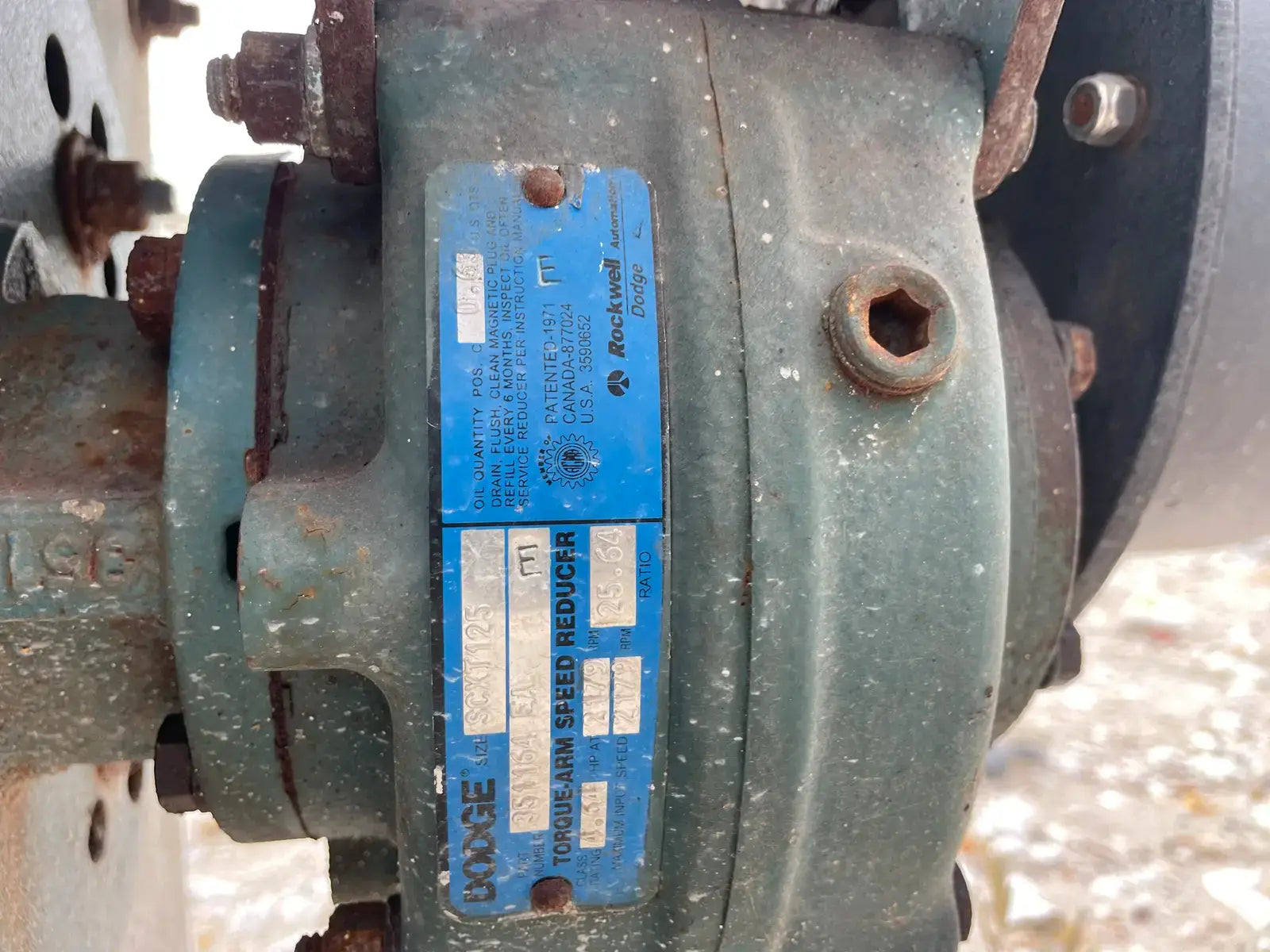 Galvanized Steel Screw Auger. Screw Diameter: 12 in. Pitch: 12 in. Material: Galvanized Steel. Length: 132 in. Baldor Motor: HP: 1 1/2, Frame: 145T, Volts: 208-230/460, RPM:1740, Hz: 60. Dodge Speed Reducer: Size: SCXT125. Part No: 351164 EA. Class Rating: 4.64 HP @ 2179 RPM. Maximum Input Speed: 2179. Ratio: 25.64.