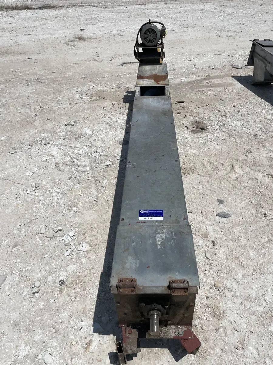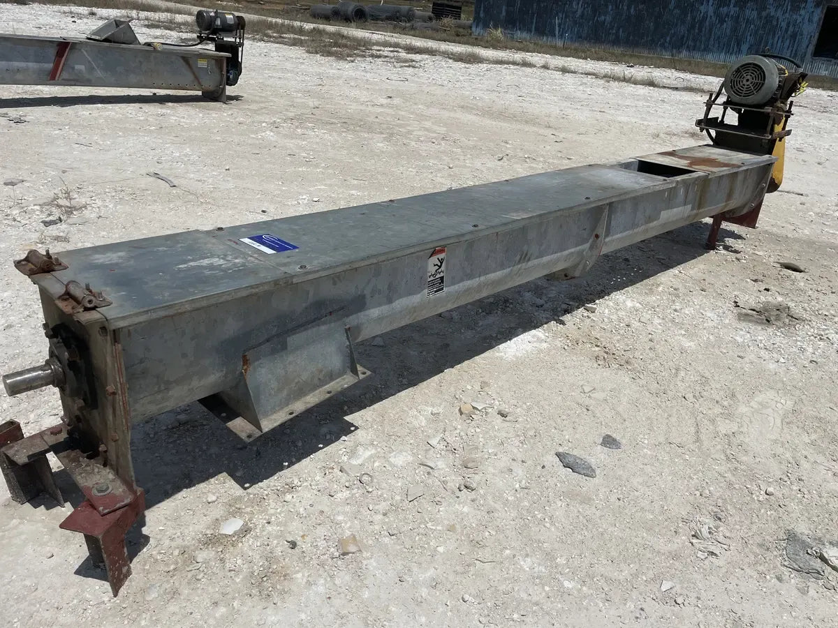 Galvanized Steel Screw Conveyor. Horizontal. Screw Diameter: 12 inches. Screw Length: 192 inches. Powered by a 3 HP Siemens Motor and a Dodge Reliance Electric Gear Motor. Siemens Electric Motor: HP: 3, AMPS: 7.9/4.0, RPM: 1730, Volts: 230/460, HZ: 60, PH:3, S.F: 1.15, Frame: 182T. Dodge Reliance Drive Motor: Size: SCXT125, Part Number: 551164NS. Input Speed: 2179 RPM. Ratio: 25.64. Overall Shipping Dimensions(in): 138 L x 19 W x 32. Chute Dimensions(in): 98 L x 19 W.