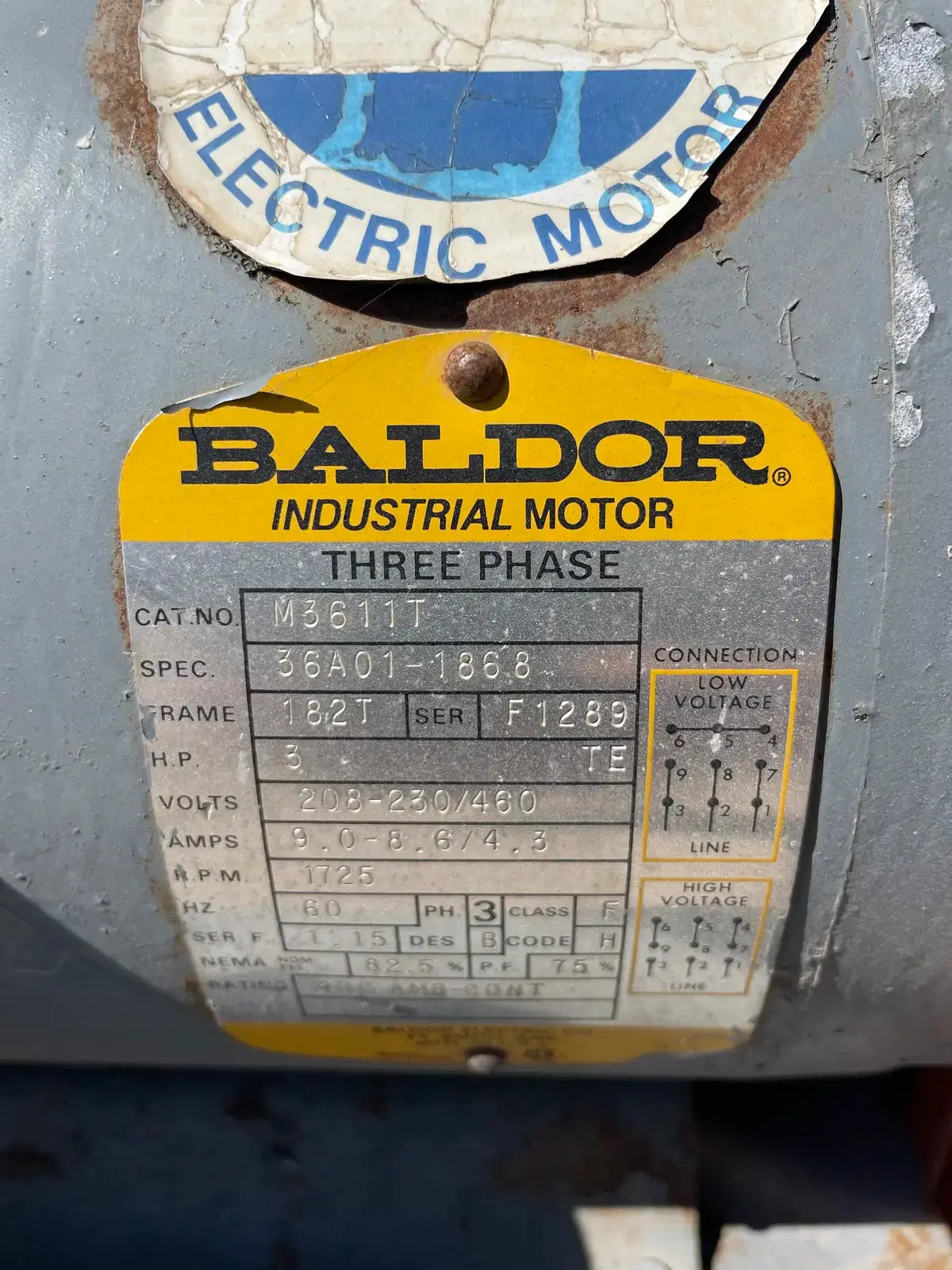- If Multiple Motors, Motor Descriptions vs specs: 3 HP Baldor Industrial Motor with a Dodge Speed Reducer ratio of 15.35.