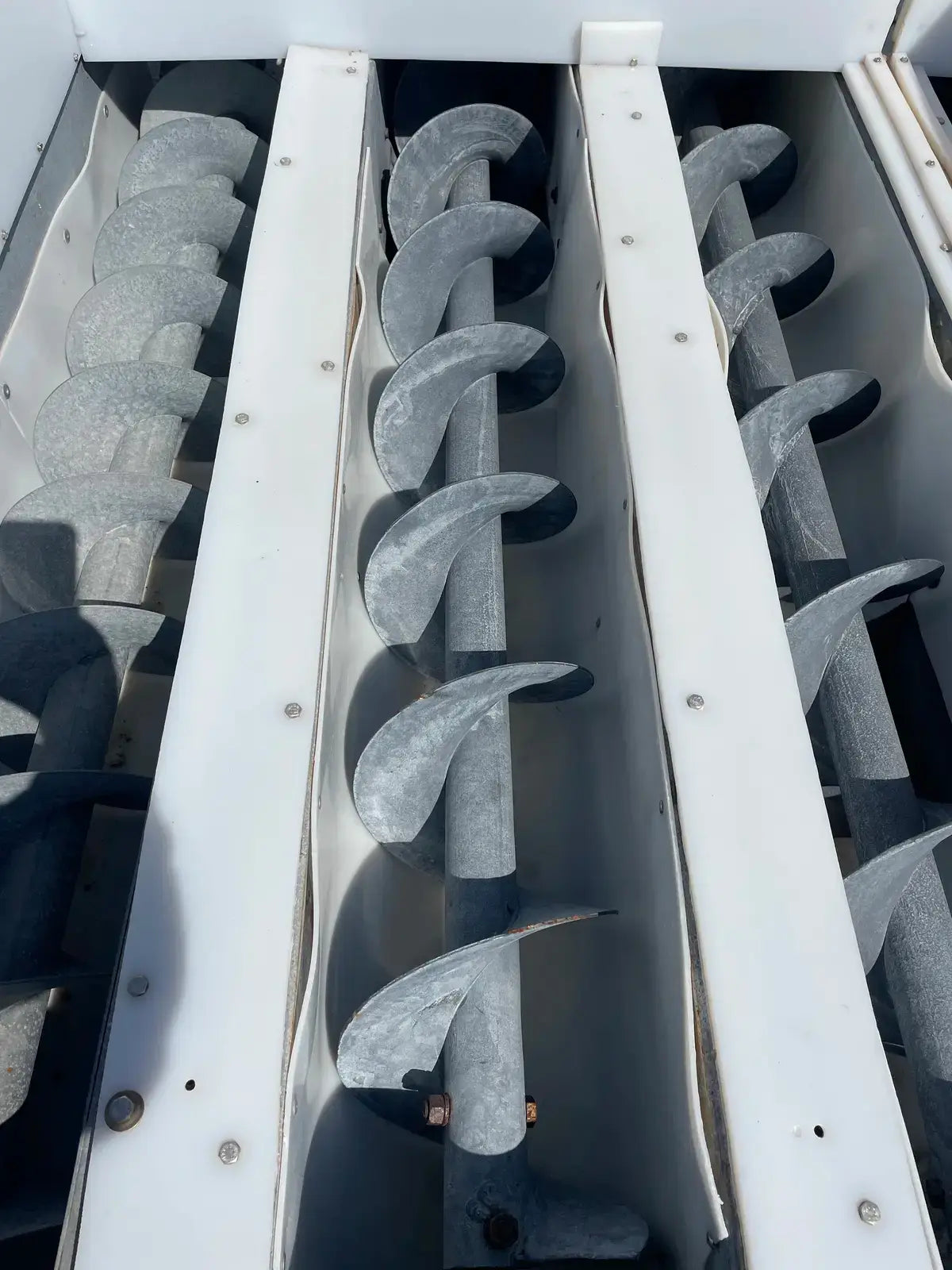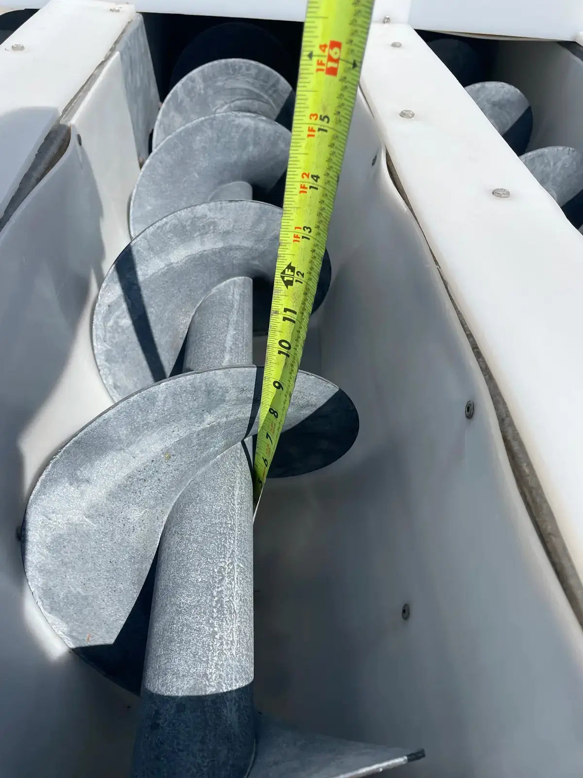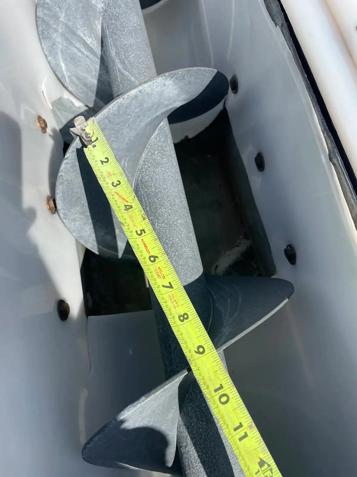 Four Galvanized Steel Screw Augers. (1) Screw Auger - Screw Diameter: 6 in. Pitch Size: 6 in. Length: 65 in. (2) Screw Auger: Screw Diameter: 9 in. Pitch Size: 9 in. Length: 125 in. (3) Screw Auger: Screw Diameter: 9 in. Pitch Size: 9 in. Length Size: 193 in. (4) Screw Auger: Screw Diameter: 9 in. Pitch Size: 9 in. Length: 303 in.
