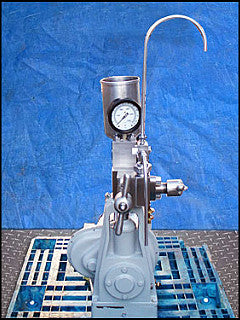 Gaulin Lab Homogenizer. Model 15M 8TA. Approximate capacity 15 gph, 2-stage manual valves, Plunger diameter: 5/8 in. Ball valve. Operating pressure 8,000 psi with intermittent 10,000 psi. General electric motor, 3 hp. Inlets: (1) 6” open top, reduces to 1 in. Outlets: (2) ½ in. pipe. Overall dimensions: 2 ft. 8 in. L x 1 ft. 8-1/2 in. W x 4 ft. 1-3/4 in. H.