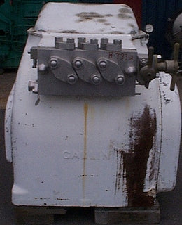Gaulin Homogenizer Painted Frame. Size 24. Model 2000e. Two stage manual valve assembly. 2-3/8 in. plungers. 3,000 psi integral seat poppet valve cylinder. Minimum capacity: 1,500 gph; maximum capacity: 2,500 gph.