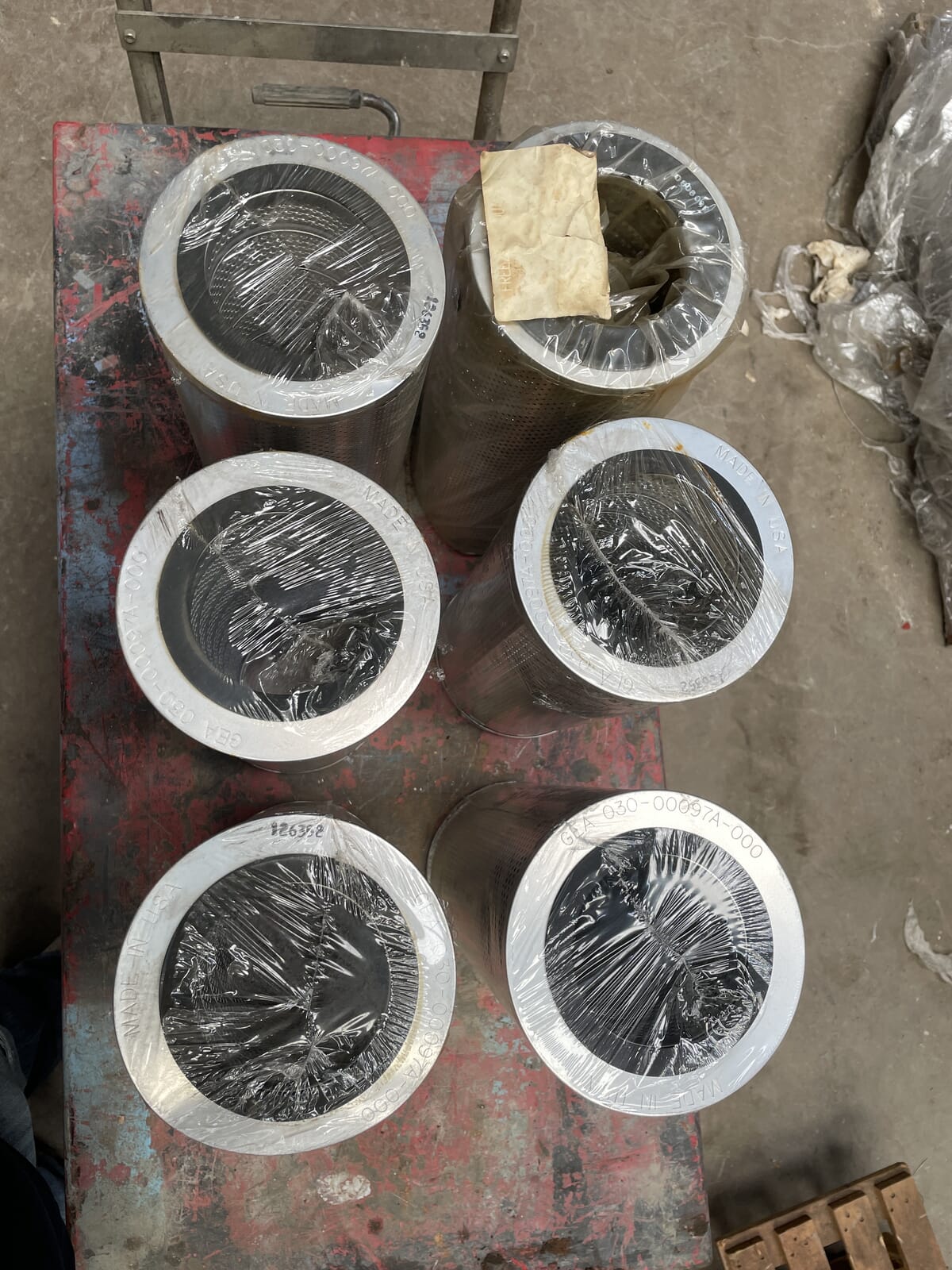 (6) GEA 030-00097A-000 Oil 6.0 Filter Cartridge. The Oil Filter Cartridges elements are used to remove contaminants from oil in a compressor system. This Filter element can be used for filtering hydraulic fluid, diesel, machining fluids, lubricating oil, coolants, gasoline, process fluids, turbine and compressor lube oils, synthetic lubricants, any many more chemicals.