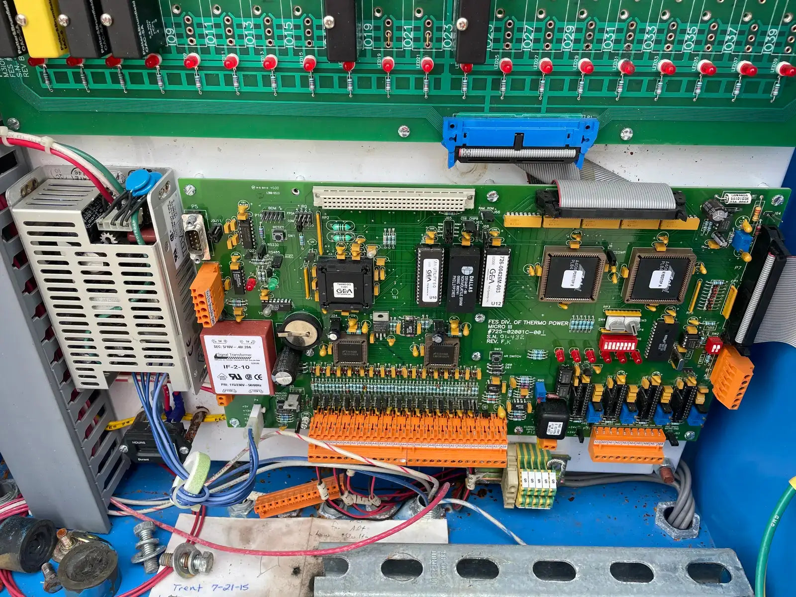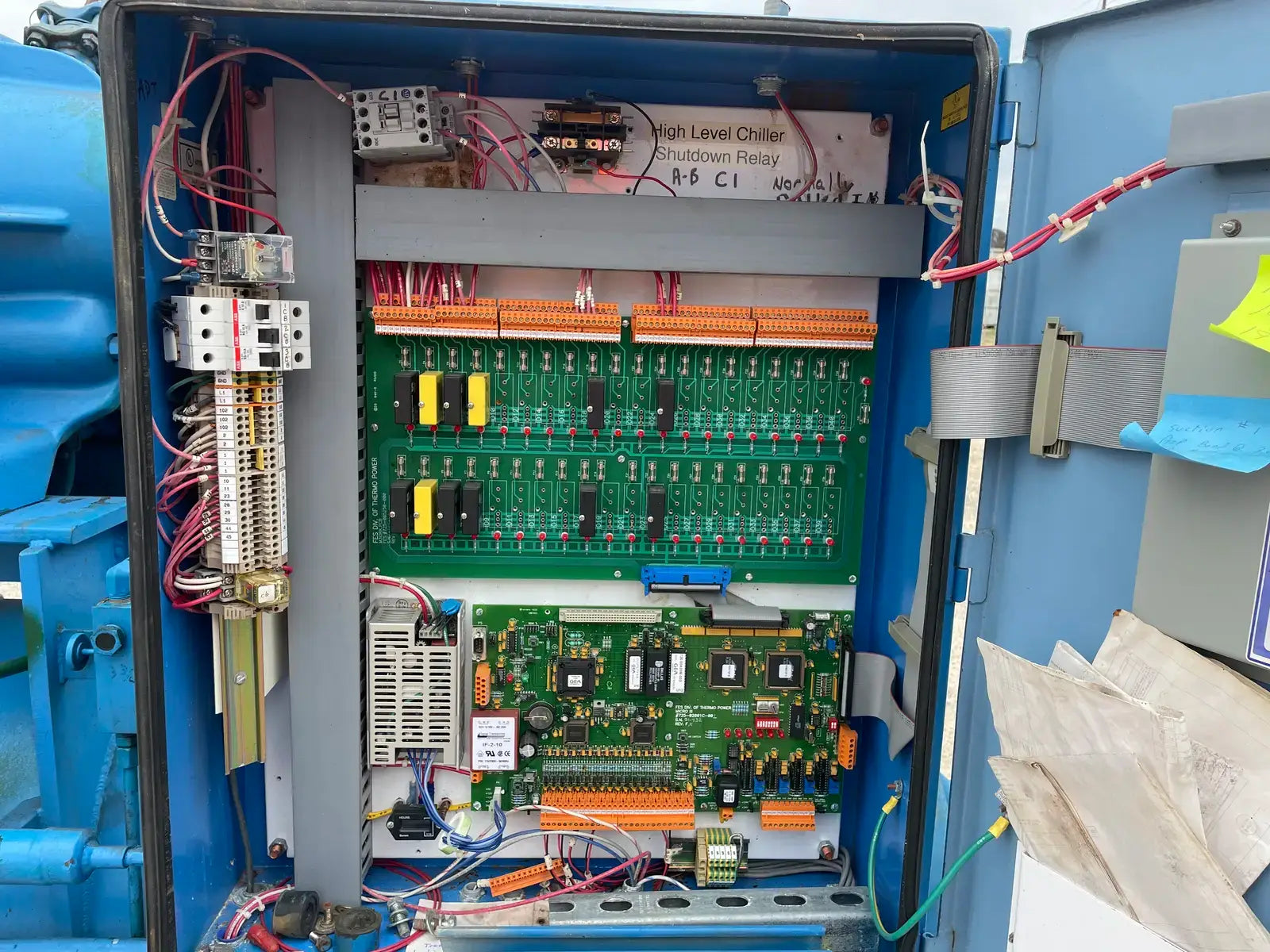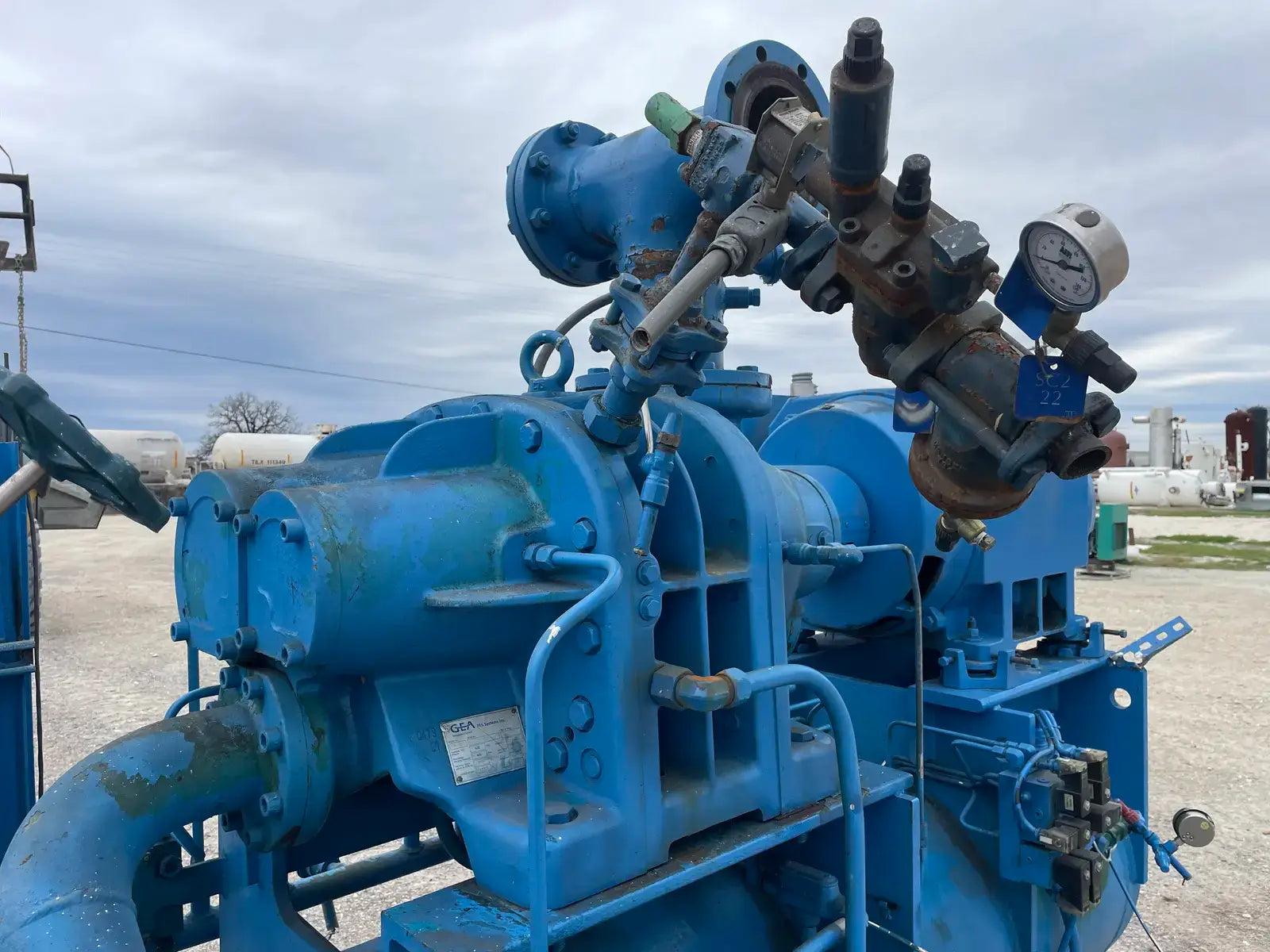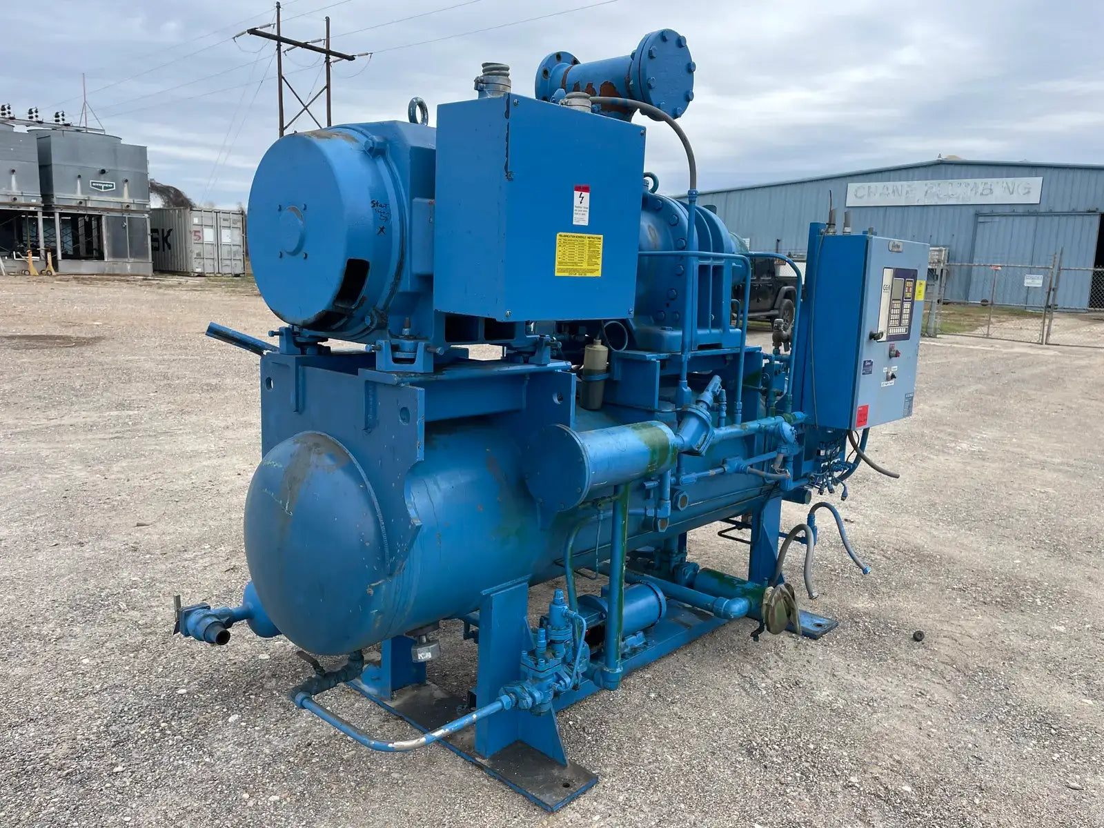 GEA FES Rotary Screw Compressor Package: FES Contract No: 01519011, Model No: 230GL, Serial No: 01519011. GEA Bare Screw Compressor: Model No: R-52, Serial No: R0479, Year of Mfg: 2001. Hydraulic Test Pressure: 620 PSIG. Max Design Working Pressure: 406 PSIG. Geometric Swept Volume @ 3550 RPM: 739 CFM. Max Input Speed: 3800 RPM. Refrigerant: R-717. Ram Industries High-Efficiency Refrigeration Duty Motor: HP: 300, Volts: 460, RPM: 3570, PH: 3, Hz: 60, Frame: 445TS. Certified by FES Oil Separator: National Board: 12395, Serial: 010467. MAWP: 300 PSI @ 500 F. MDMT: -20 F @ 300 PSI. Year 2001. Micro III GEA FES Control Panel. Previously ran with ammonia refrigerant.