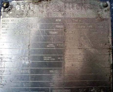 General Electric Motor (500 HP, 2400 / 4160 V)
