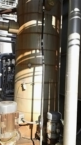 Glycol Storage Tank. Estimated capacity: 800 Gallons. 41 in. dia. x 156 in. straight wall. Inlet /outlet(s): 2 in., 2-1/2 in., 3 in., 4 in., 5 in. Overall dimensions: 5 ft. 2 in. L x 5 ft. 2 in. W x 13 ft. 3 in. H.