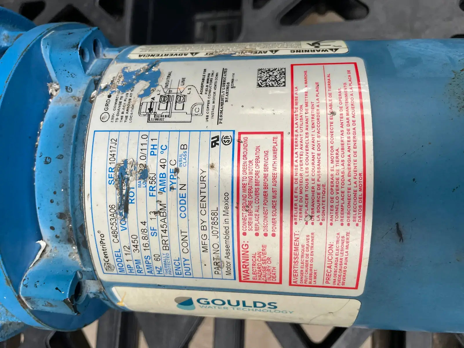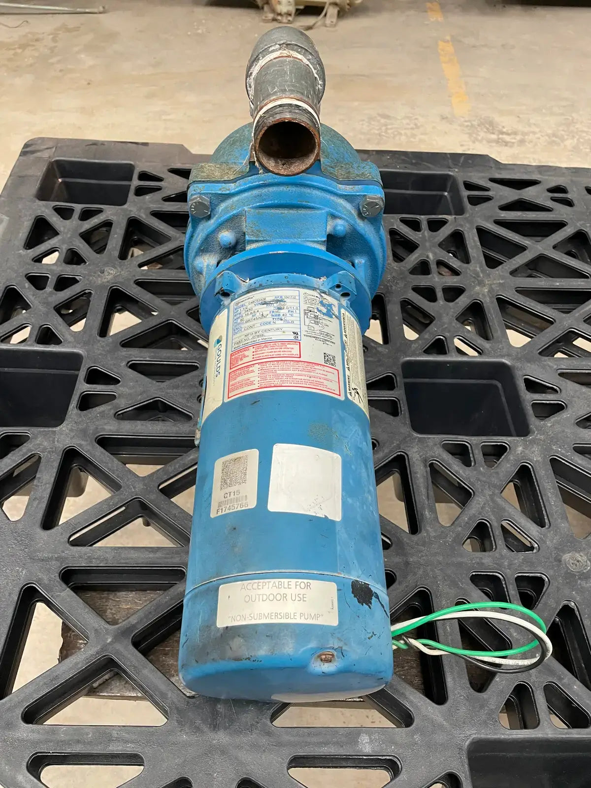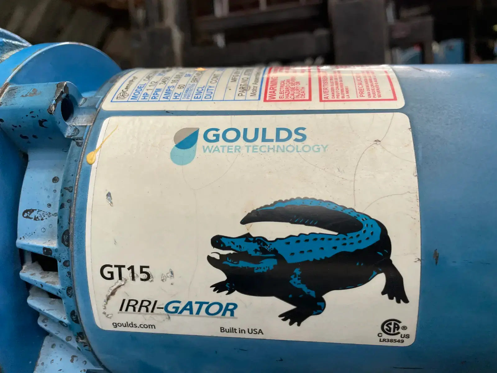 Goulds GT15 Centrifugal Pump. Model: GT15. HP: 1.5, Phase: 1. Pipe Connections(in): 1.5 NPT Suction, 1.5 NPT Discharge. Capacities to 110 GPM at 5 Foot Suction lift. Maximum working pressure: 125 PSIG. Maximum water temperature: 140 F (60 c). Rotation is clockwise when viewed from motor end. Century Motor: Model: C48C53A06, Serial No: 10417J2, HP: 1 1/2, Volts: 115/230, RPM: 3450, HZ: 60, Amps: 16.8/8.4, Max Load: 22.0/11.0. Applications specifically designed for are for Lawn sprinkling, Irrigation, Air Conditioning Systems, Heat Pumps, Water Transfer, Dewatering.