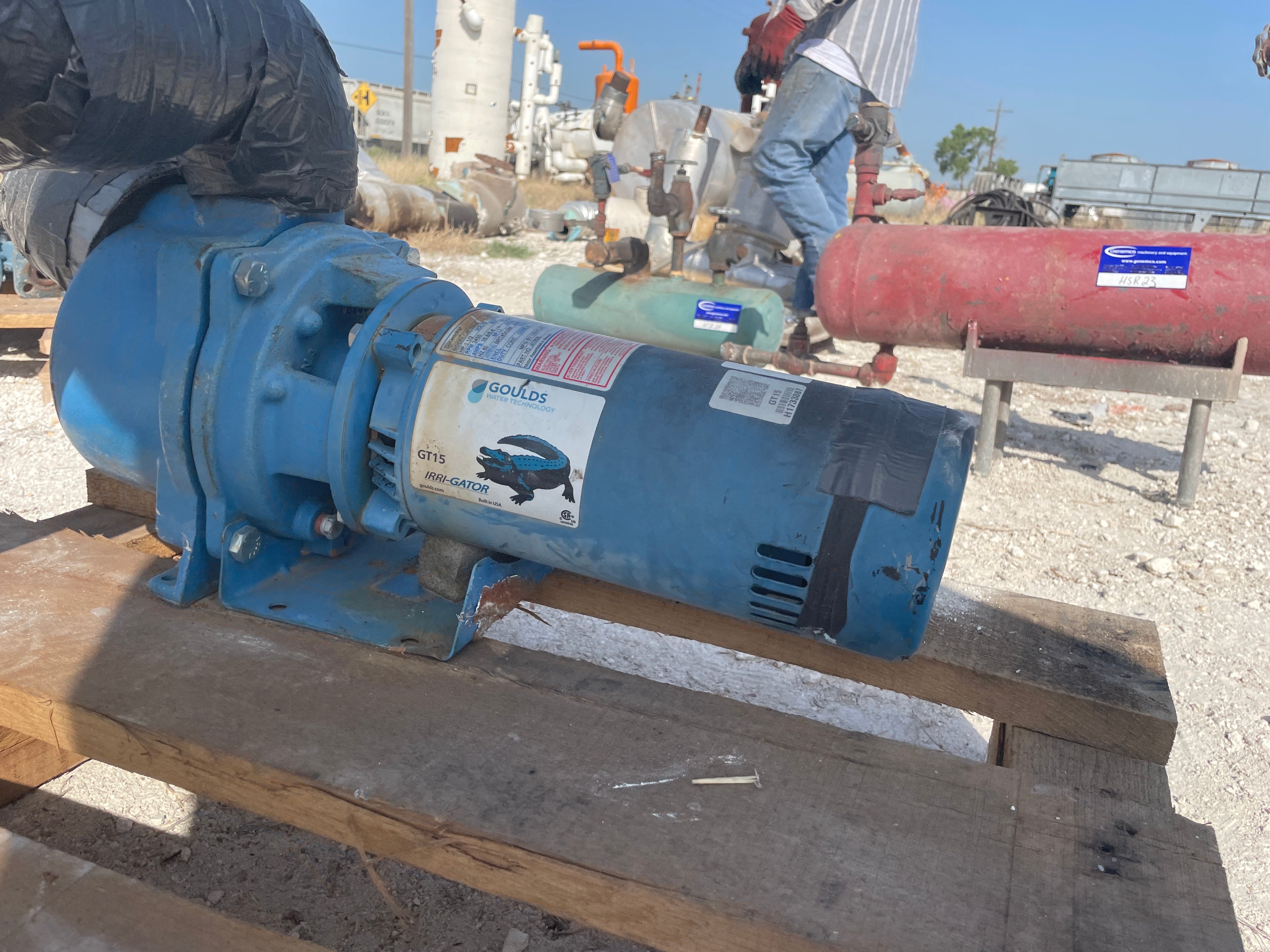 Goulds GT15 Centrifugal Pump. Model: GT15. HP: 1.5, Phase: 1. Pipe Connections(in): 1.5 NPT Suction, 1.5 NPT Discharge. Capacities to 110 GPM at 5 Foot Suction lift. Maximum working pressure: 125 PSIG. Maximum water temperature: 140 F (60 c). Rotation is clockwise when viewed from motor end. Century Motor: Model: C48C53A06, Serial No:05517J2, HP: 1.1/2, Volts: 115/230, RPM: 3450, HZ: 60, Amps: 16.8/8.4, Max Load: 22.0/11.0. Applications specifically designed for are for Lawn sprinkling, Irrigation, Air Conditioning Systems, Heat Pumps, Water Transfer, Dewatering.