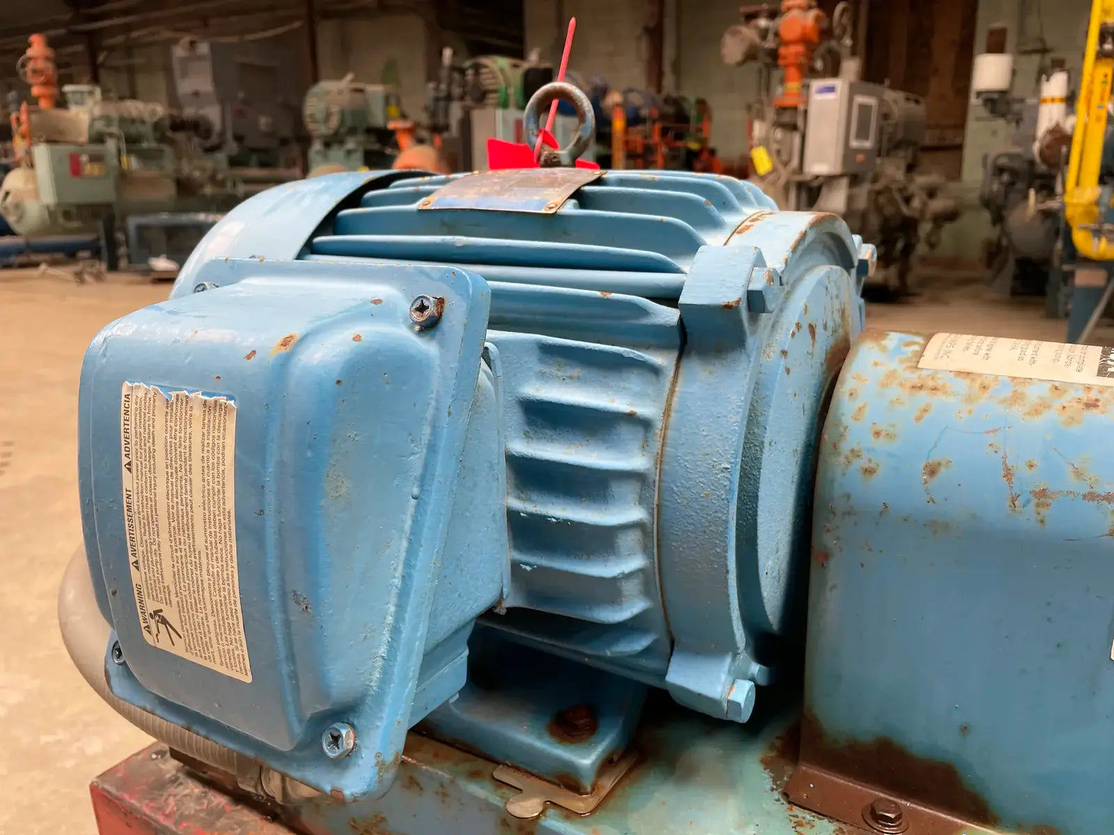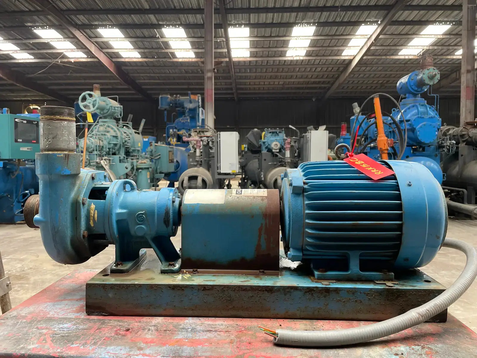ITT Goulds Centrifugal Pump. Index: 4BFK1, Model: 3756, Impeller Size: 5.4, Size: 2.5x3-7. Inlet: 3in. Outlet: 2.5in. TECO Motor: HP: 7.5, Volts: 230/460, RPM: 3500, Amps: 18.2/9.1, Hz: 60, PH: 3. Previous paired with BAC Cooling Tower.
