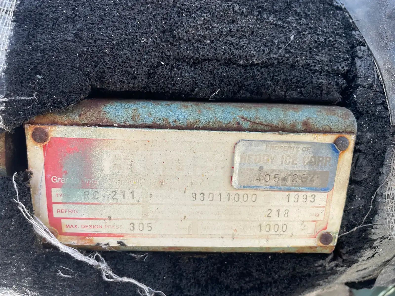 Grasso, Inc Reciprocating Compressor. Model RC-211. Serial No: 93011000. Year of Mfg: 1993. Max. Design Pressure: 305 PSIG. Max Speed: 1000 RPM. Number of Cylinders: 2.