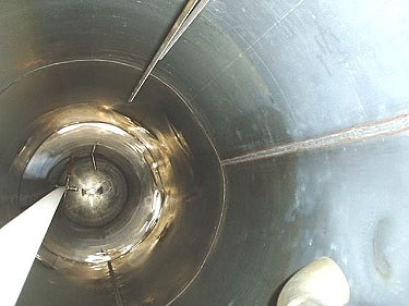 Griffin Ozone Mixing Tank- 500 Gallon. Less pressure plate. Inlets: (1) 1/2 dia. stainless steel NPT (male), (1) 2 in. dia. port with 6 in. dia. flange and (4) 3/4 in. dia. thru-holes @ center-to-center distance of 3-1/2 in., (1) 2 in. dia. S-line fitting (flows from bottom to top), (1) 2 in. dia. S-line fitting (flows from bottom to top, starts as 2 in. S-line and reduces to a 1 in. dia. pipe), (1) 2 in. dia. stainless steel pipe (flows from bottom to top). Outlets: (2) 1 in. dia. stainless steel NPT (female, side), (1) 2 in. dia. S-line fitting (tank bottom). Tank: 30 in. dia. x 14 ft H. Overall dimensions: 50 in. W x 17 ft H.