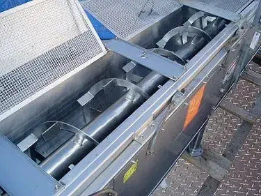 1994 Groen Continuous Ribbon Blender and Coater - 30 cu. ft. Model: CSB-18184. S/N: 100103-1. Nat'l Bd: 139008. 30 cu. ft. Dwg No's: C6796-40 & C6796-41. MAWP @ 353 °F: 120 psi. MDMT @ 120 psi: -20 °F. Infeed hopper dimensions: 30 in. L x 23 in. W. Screw auger housing dimensions: 18 in. dia. x 14 ft. 4 in. L. Auger housing diameter: 19 in. Equipped with (4) removable flip-top lids for easy maintenance. Sew-Eurodrive Motor, 3 hp, 1,680 rpm, 230-460 V, 13.6 - 6.8 amps, 60 Hz, 3 phase. Sew-Eurodrive Gear Drive, 4.34 ratio, 392 rpm (final). Inlets: (1) 1 in. dia. refrigerant pipe, (1) 20 in. L x 19 in. W infeed. Outlets: (1) 1 in. dia.refrigerant discharge, (1) 19 in. W x 8 in. H discharge chute. Overall dimensions: 20 ft. 9 in. L x 45 in. W x 68-1/2 in. H. (ACN1450).