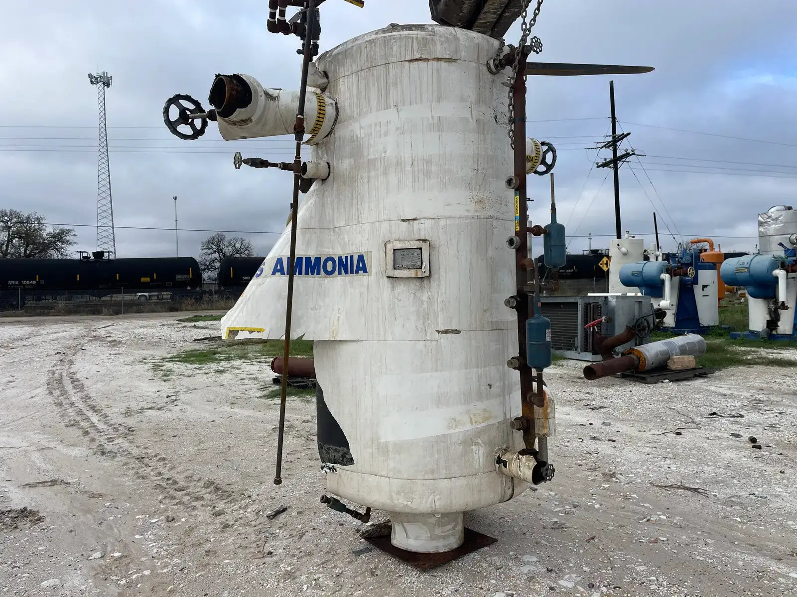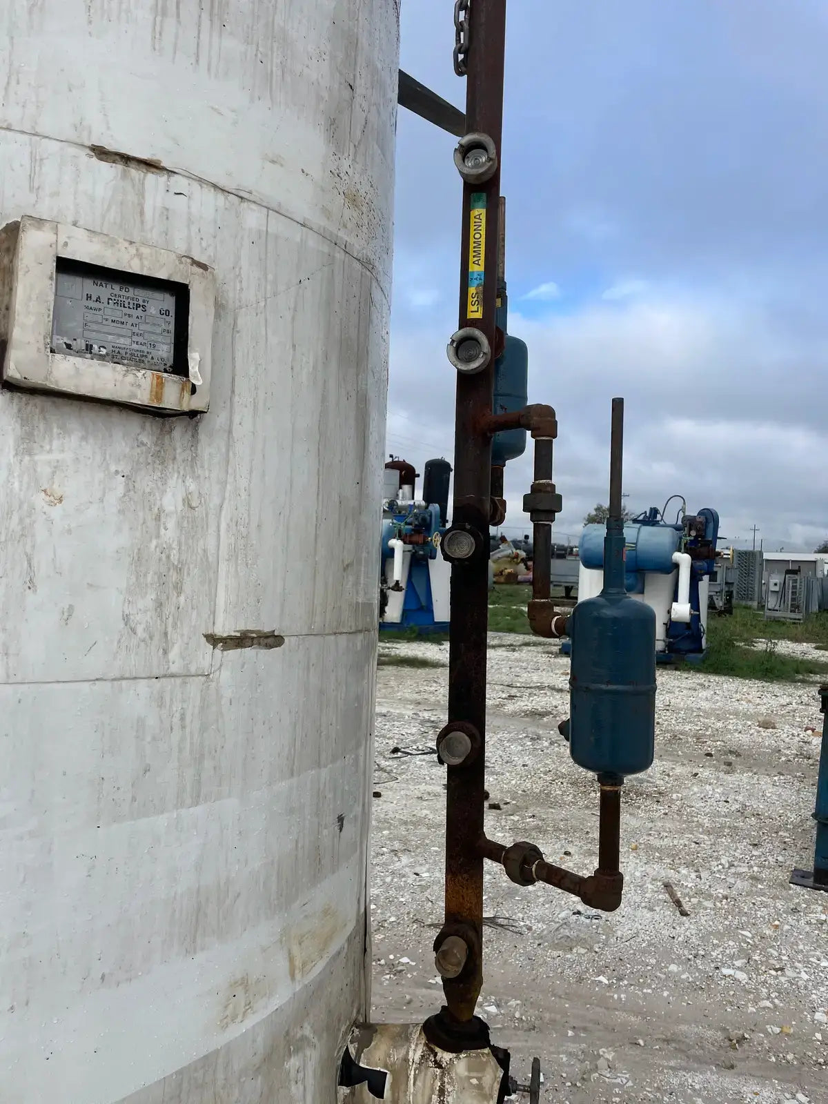 H.A Phillips & Co. vertical ammonia receiver with an estimated capacity of 634 Gallons. Certified by H.A. Phillips & Co. MAWP: 150 PSI @ 250 F. MDMT: -50 F @ 600 PSI. Estimated holding capacity: 634 Gallons. Vessel dimensions: 90L x 40dia. Manufacture year: 1992. National Board: 5685. Serial No: 5685.