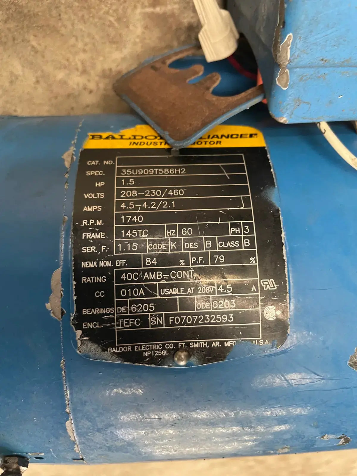 - Motor Manufacturer: Baldor Reliance