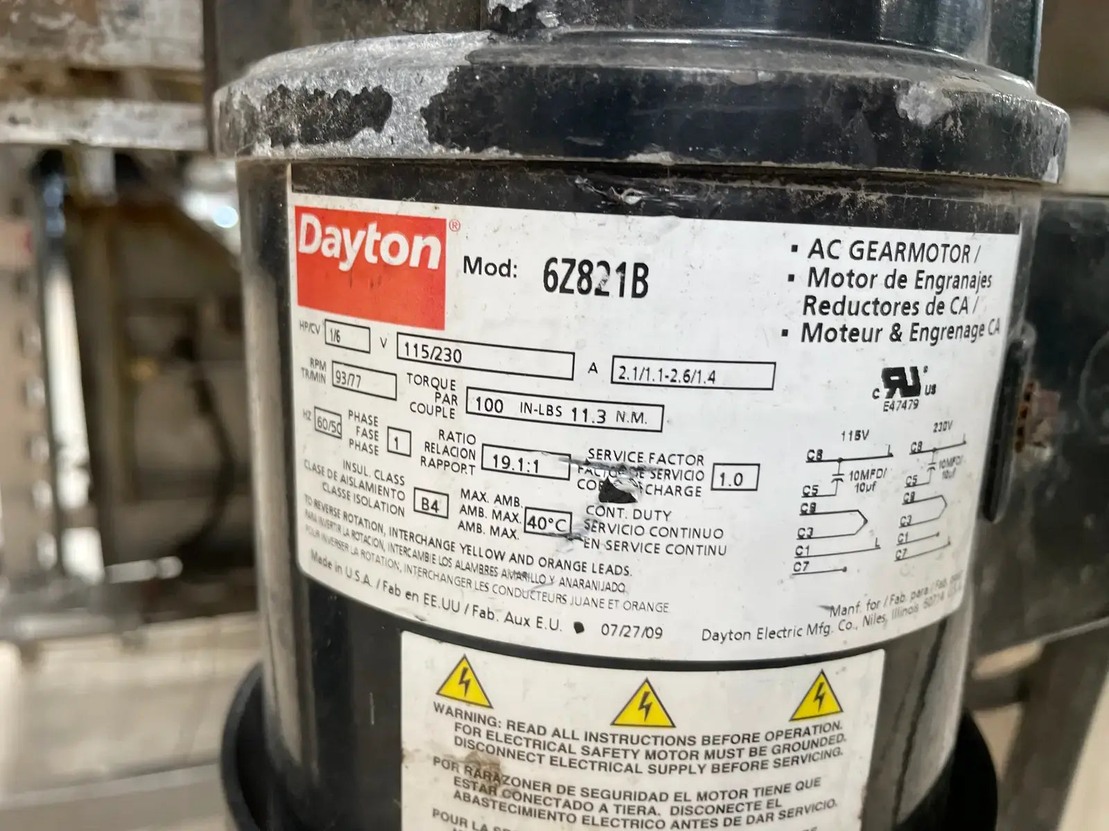 - If Multiple Motors, Motor Descriptions vs specs: Lesson Auger Motor: HP: 1/2, RPM: 1725, Hz: 60, FLA: 8.8 Volts: 115-208/230, Ph: 1. Dayton Bagging Line Motor: HP: 1/6, Volts: 115/230, Amps: 2.1/1.1-2.6/1.4, Hz: 60. Ph: 1.