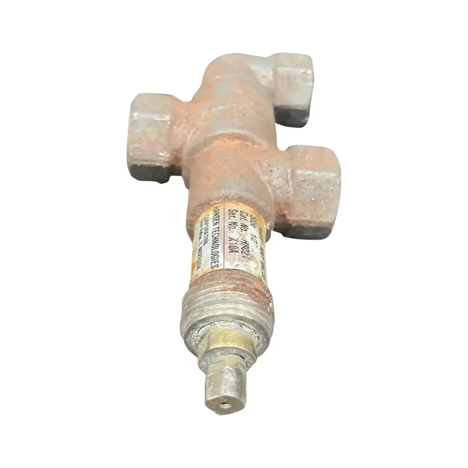 Hansen Technologies Three Way Valve. Size: 1/2(13mm). Type: 3-Way Shut-Off Valve. 1/2 Female Pipe Thread Connection. Cat No: H8021. Serial No: X10A.