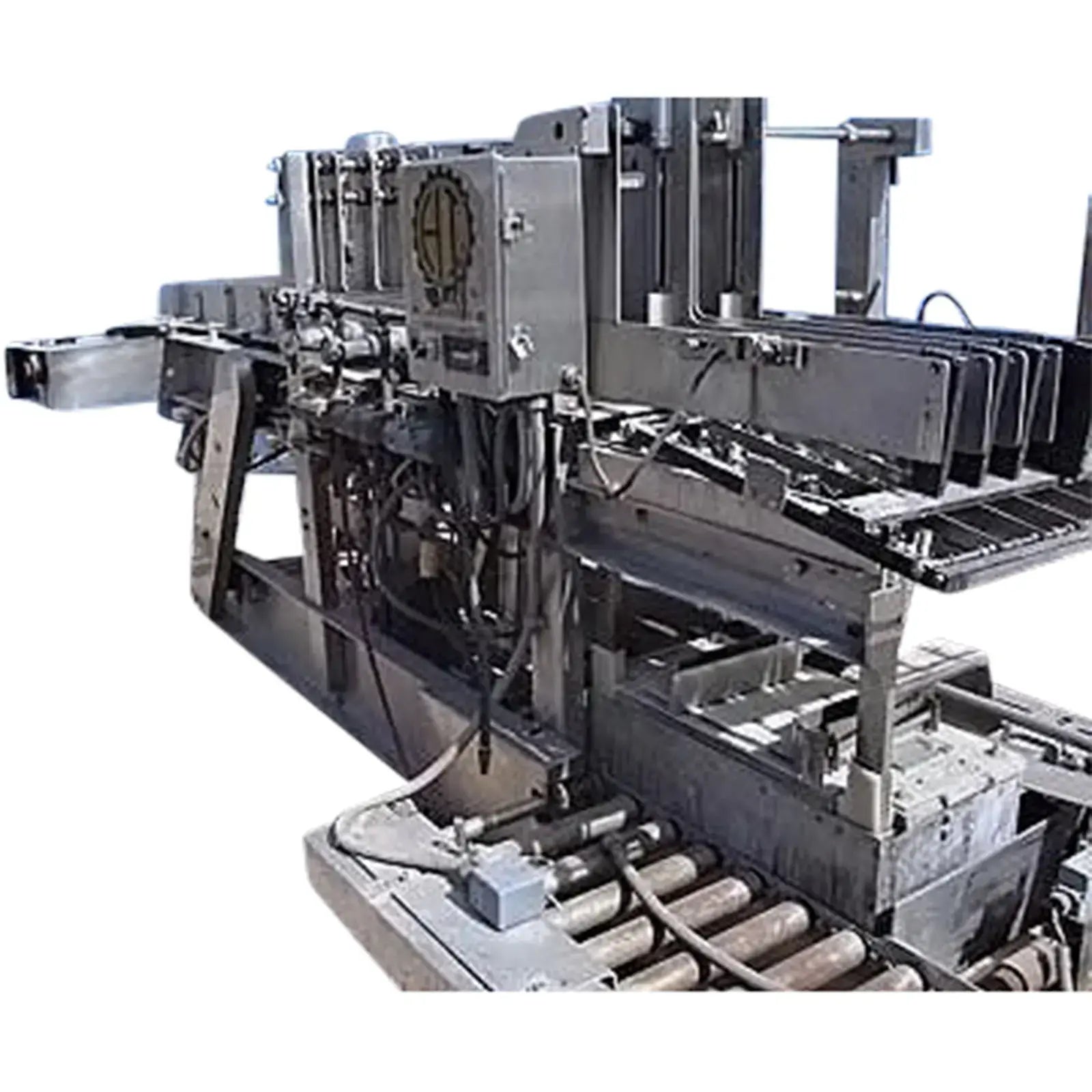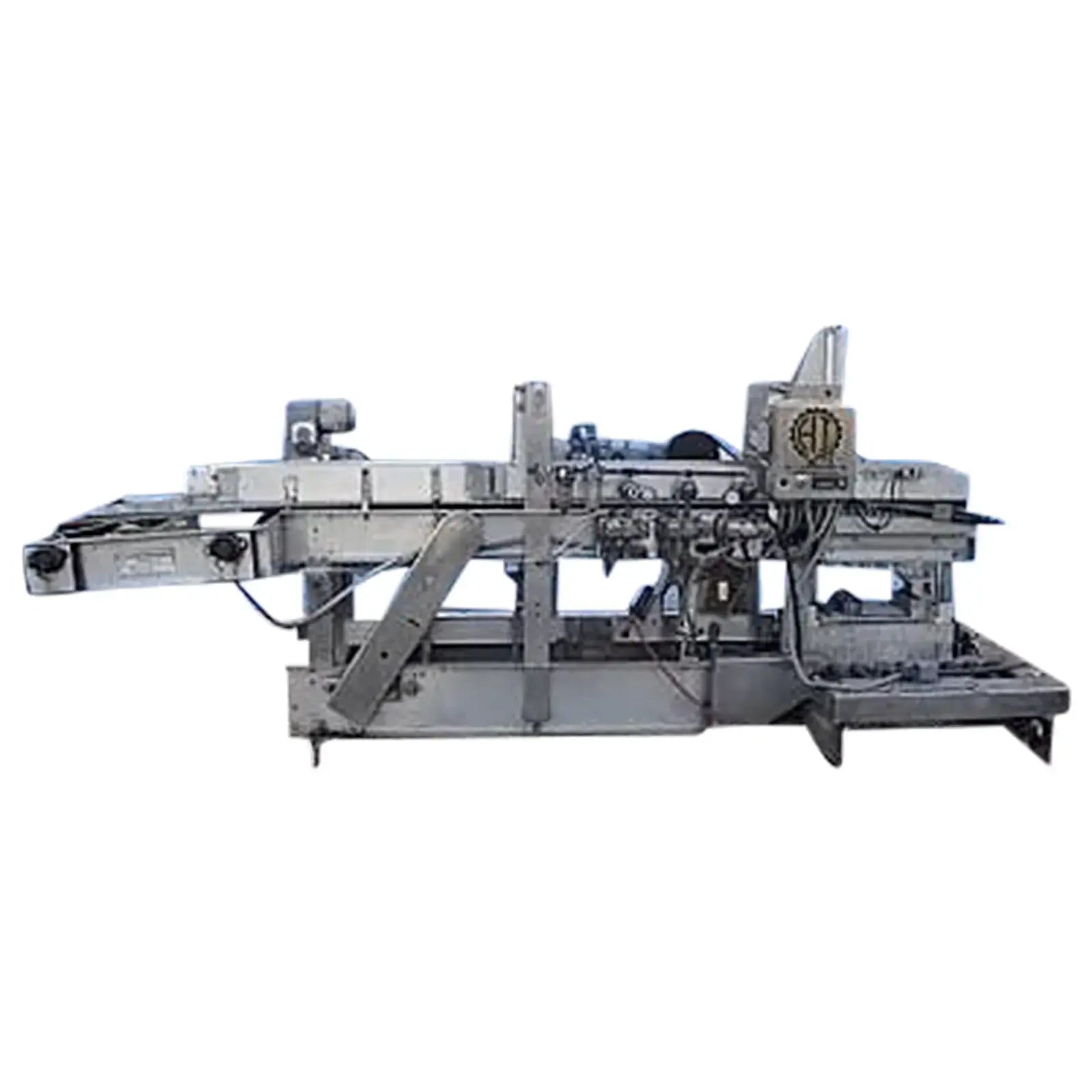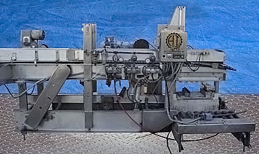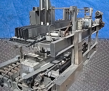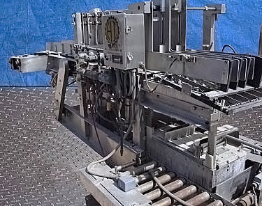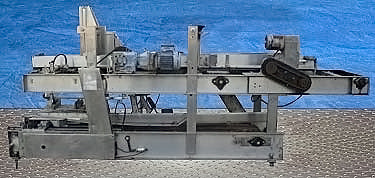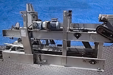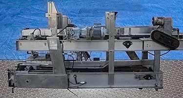 Hartness Case Packer. Model: 100. S/N 1477 ECO322. For 6 oz to 1 liter bottles. Arrangements of 16 & 24 pack configurations are possible. Wooden, plastic and cardboard cartons/cases can be used either as full depth or half depth trays. Motor, 2 hp, 1170 rpm, 230/460 V, 6.0/3.0 amps, 60 Hz, 3 phase. Variable Speed Drive, 460-2230 rpm (input), 9.1-43 rpm (output), 2260 in-lbs torque. The Hartness 100 Case Packer is a very efficient, high speed, ultra simple and fully automatic packing machine. It is designed to collate bottles on a conveyor line system while staging an empty case directly underneath the bottles and then automatically dropping the bottles into the case. This packer has a number of unique features which makes it very easy to operate. Inlets/outlets: (2) 6 in. W stainless steel belts that divide into (4) 3-1/2 in. W product sections. Overall dimensions: 12 ft. 4 in. L x 60 in. W x 71 in. H. (XMR13)