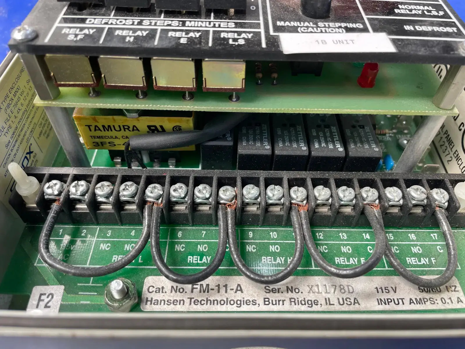 Hansen Technologies Frost Master Defrost Control. Cat No: FM-11-A, Serial No: X1178D. Power Supply: 115 Volt, 50/60 Hz.
