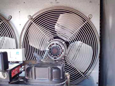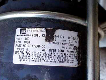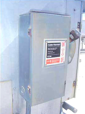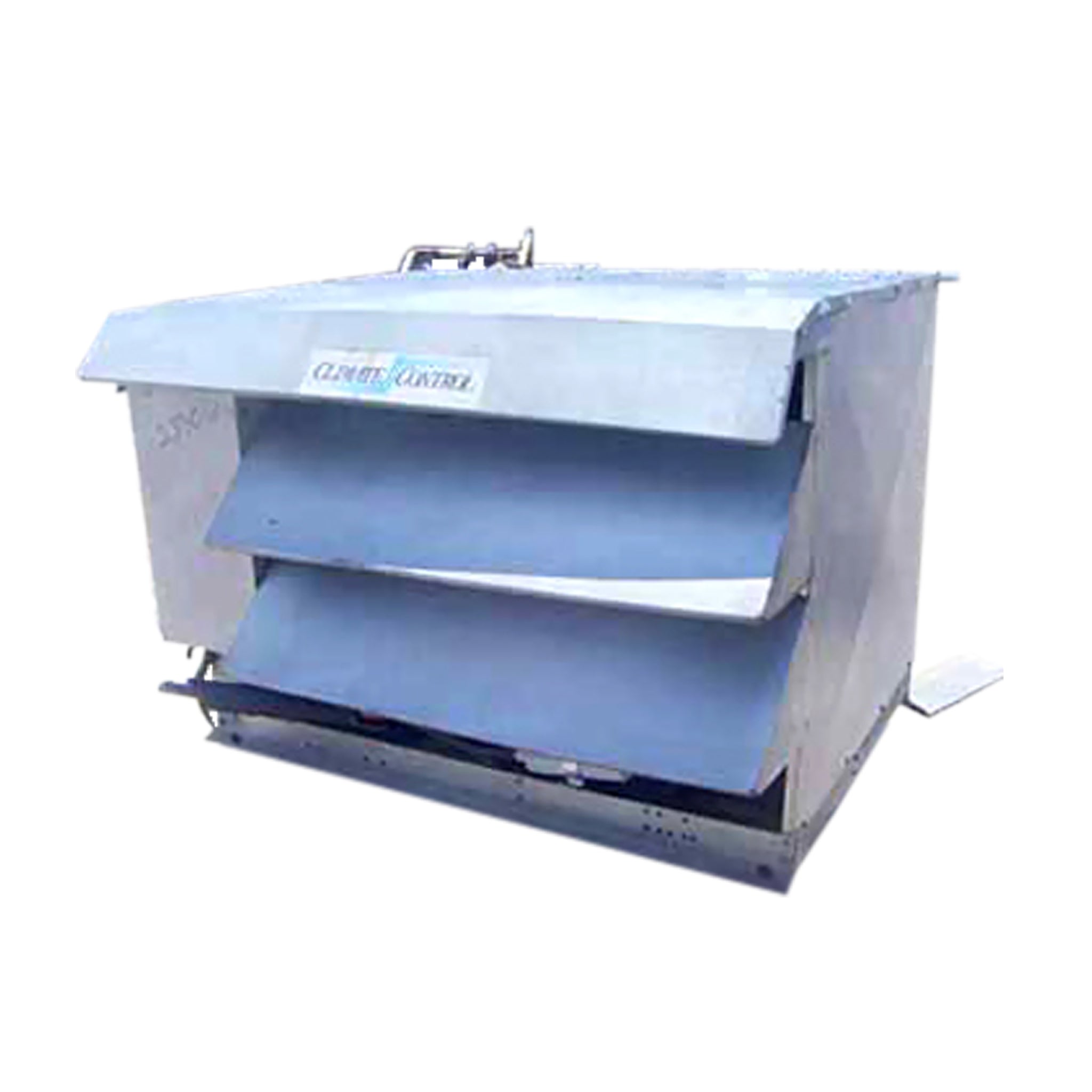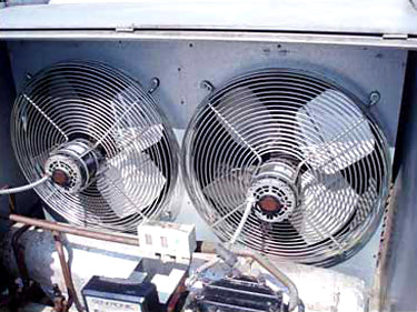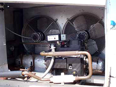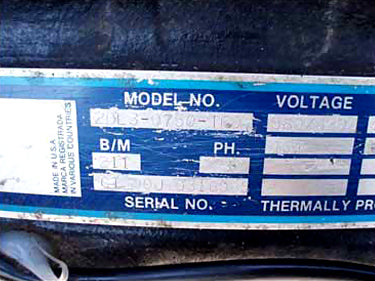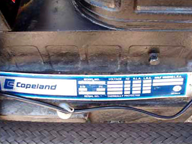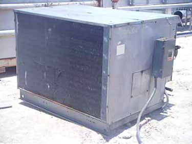 Climate Control Air Cooled Condensing Unit - 4.4 Ton. Copeland 2-Cylinder Reciprocating Compressor, Model: 2DL3-0750-TDF, S/N: CT 90J 03169 S, B/M: 211, capacity (medium temperature): 52,800 Btuh, power supply: 380-420/460 V, 13.8 RLA, 8.5 LRA, 50/60 Hz, 3 phase. Number of fans: 2. Fan diameter: 2 ft. (2) Emmerson Motors, 3/4 hp, 1080 rpm, 460 V, 2.1 amps, 60 Hz, single phase. Evaporator, fins per inch: 12 fpi. Receiver- 10 Gallon, inside straight-wall dimensions: 8 in. dia. x 4 ft. L. Cutler-Hammer Heavy Duty Safety Switch, power supply: 600 VAC, 30 amps. Inlets: (1) 1 in. dia. compressor suction port. Outlets: (1) 1/2 in. dia. compressor discharge port. Overall dimensions: 5 ft. 7 in. L x 4 ft. 3-1/2 in. W x 3 ft. 8 in. H.