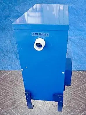 Henlex Incorporated Dust Pollutant Air Extractor. Model: HV205-H. S/N: 0112-50209. Hopper capacity: 4.0 cu. ft. Hyundai Motor, 5 hp, 3485 rpm, 575 V, 60 Hz, 3 phase. Control panel with Allen Bradley SLC 500 progRam Industriesmable controller, control voltage: 115 VAC. Flo-Divert Valve with (2) Clippard Minimatic air cylinders and Parker electro-pneumatic controls and Honeywell limit switches. Inlets: (2) 1 in. dia. NPT (female), (2) 2 in. dia. ports, (1) 2 in. dia. S-line fitting. Outlets: (1) 2 in. dia. S-line fitting, (1) 3 in. dia. S-line fitting. Henlex high-velocity-low-volume air extractors remove hazardous, workplace pollutants such as fine particulates (dusts and fibers), volatile organic chemicals (solvents), metal fumes (welding) and smoke (molten metal casting). This not only prevents workers from inhaling undesirable substances but also protects products and machinery from contamination. Overall dimensions: 44 in. L x 40 in. W x 69 in. H. (ACN200).