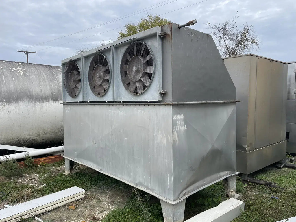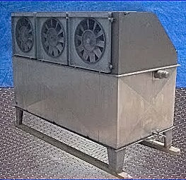 (1) Henry Technologies Soby Blast Freezer Evaporator-20 Tons. Model: 1F2G-16-21-300-HD. S/N's: 113201-1 and 113201.2. Refrigerant: recirculated ammonia R-717. (3) 26 in. dia. fans with ASEA Motors, 7.4 hp, 1725 rpm, 480 V, 10.5 amps, 60 Hz, 3 phase. Inlets/outlets: (1) 5 in. dia. port, (1) 1-1/2 in. dia. port. Overall dimensions: 12 ft. L x 67 in. W x 8 ft. 6 in. H.