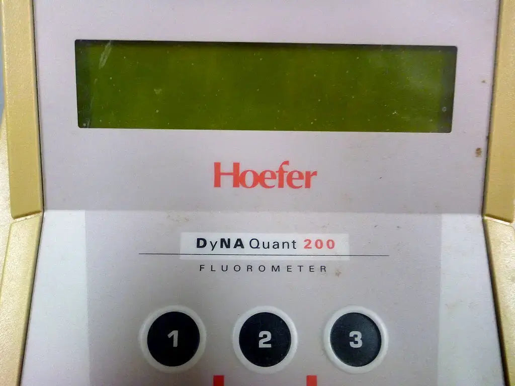 Hoefer DyNA Quant 200 Fluorometer. Code no: 80-6226-49. 115 VAC, 47-63 HZ, 15 W. Overall dimensions: 1 ft. 1 in. L x 6-1/4 in. W x 5 in. H.